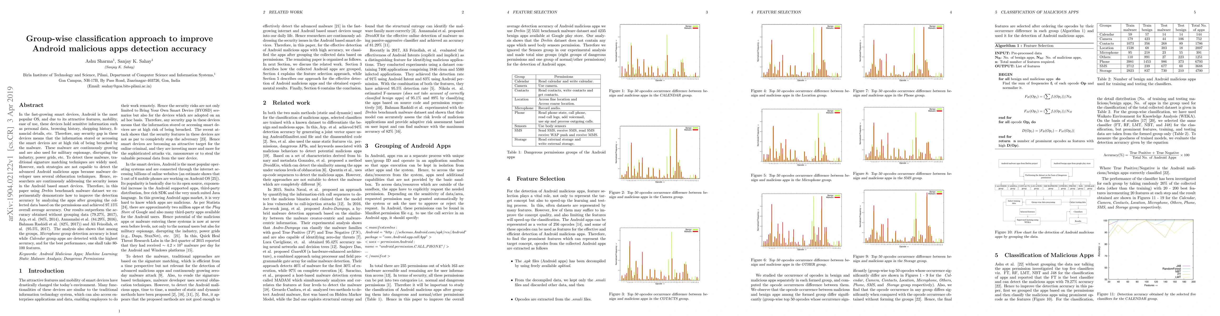 This paper proposes a group-wise classification approach to enhance Android malware detection accuracy using the Drebin dataset. By grouping apps based on permissions, the method achieves 97.15% overall accuracy, significantly outperforming previous techniques.