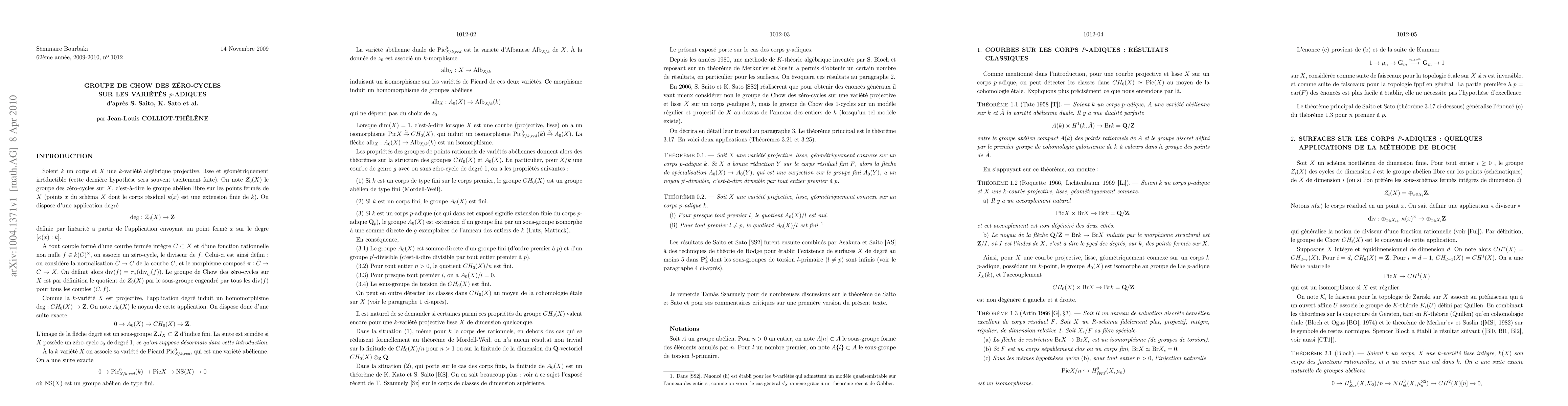 Ceci est un rapport sur l'article "A finiteness theorem for zero-cycles over p-adic fields" (arXiv:math/0605165) de Shuji Saito et Kanetomo Sato. ----- This is a survey on the paper "A finiteness theorem for zero-cycles over p-adic fields" (arXiv:math/0605165) by Shuji Saito and Kanetomo Sato.