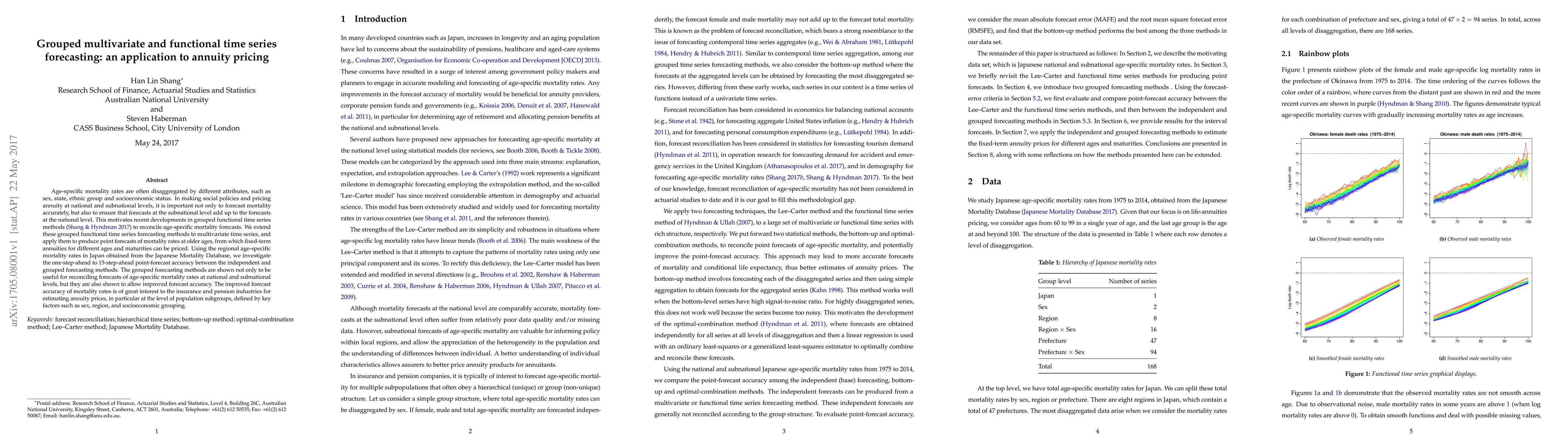 This paper develops grouped multivariate and functional time series forecasting methods to improve the accuracy of age-specific mortality rate forecasts, which are crucial for annuity pricing. The proposed method reconciles forecasts at national and subnational levels, demonstrating improved accuracy and relevance for insurance and pension industry applications.
