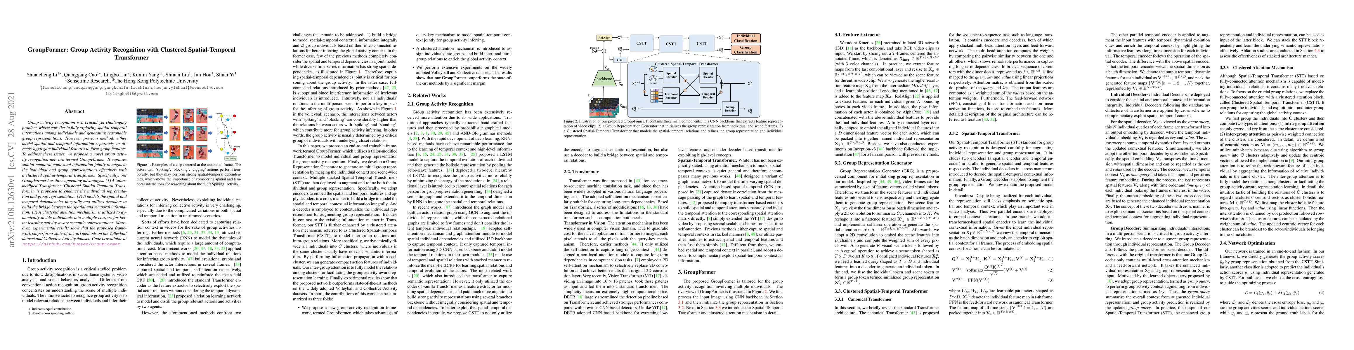 The GroupFormer network proposes a novel clustered spatial-temporal transformer to enhance group activity recognition by integrating spatial and temporal dependencies, and dynamically clustering individuals for better semantic representation. It outperforms existing methods on Volleyball and Collective Activity datasets.
