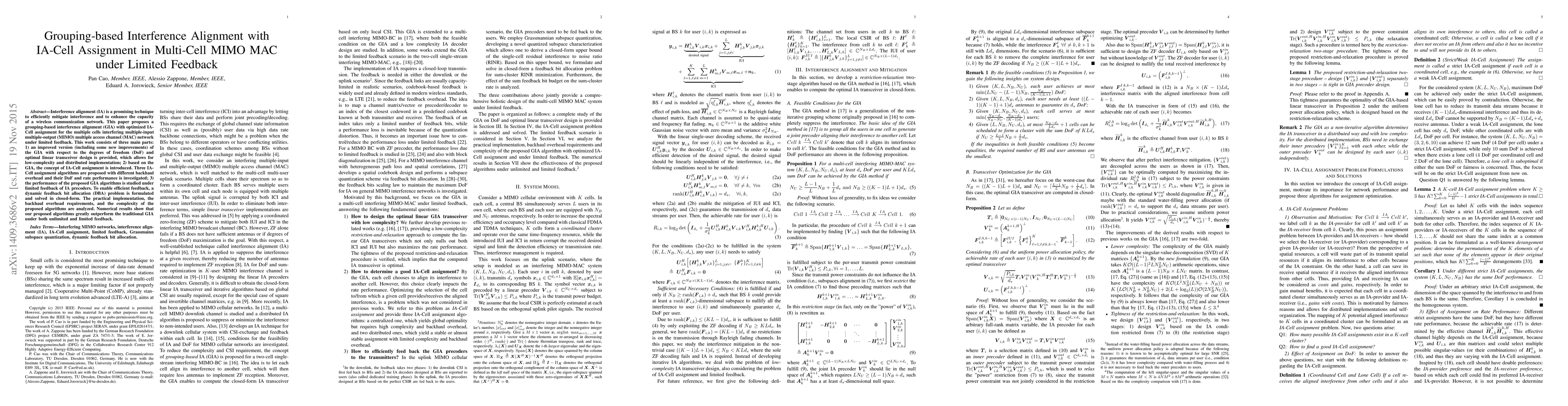 This paper proposes a grouping-based interference alignment (GIA) technique with optimized IA-Cell assignment for MIMO multi-cell networks under limited feedback. The study includes low-complexity GIA algorithms, three IA-Cell assignment methods, and a dynamic feedback bit allocation scheme, demonstrating significant performance improvements over traditional GIA.