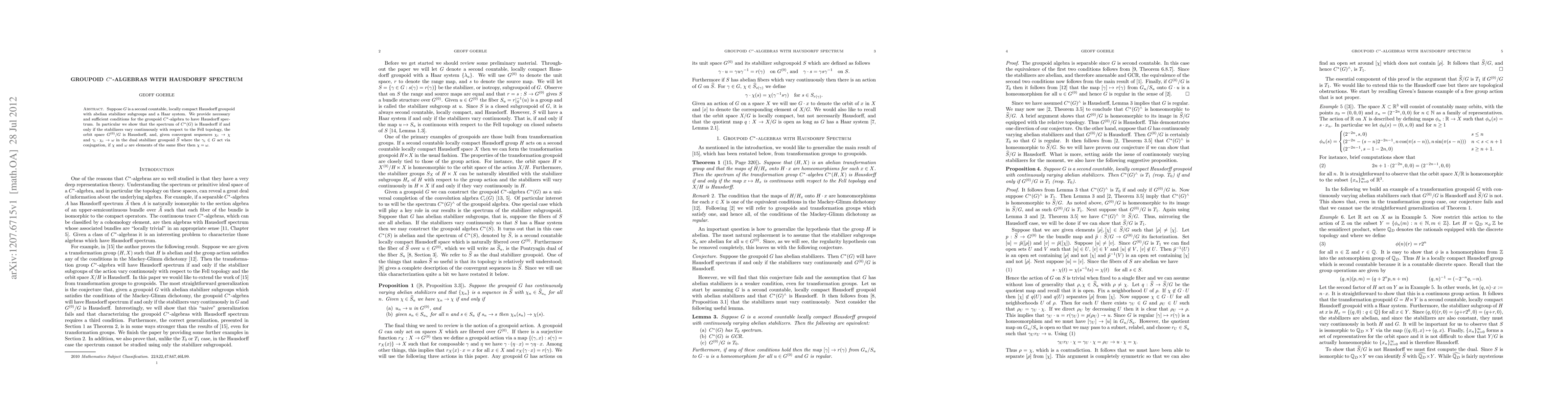 This paper establishes conditions for the groupoid $C^*$-algebra $C^*(G)$ to have a Hausdorff spectrum, showing it occurs if stabilizers vary continuously, the orbit space is Hausdorff, and certain convergence conditions in the dual stabilizer groupoid are met.