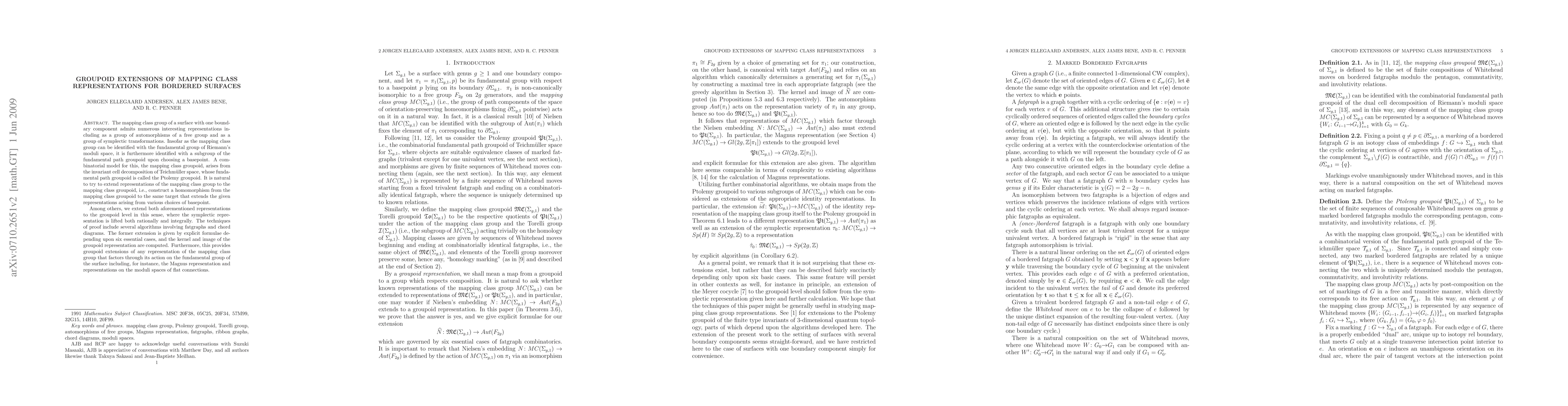 This paper explores the extension of mapping class group representations to the groupoid level, specifically focusing on the fundamental path groupoid of Teichmüller space. It extends both the automorphism and symplectic representations, providing explicit formulae and computational techniques for the groupoid extensions.