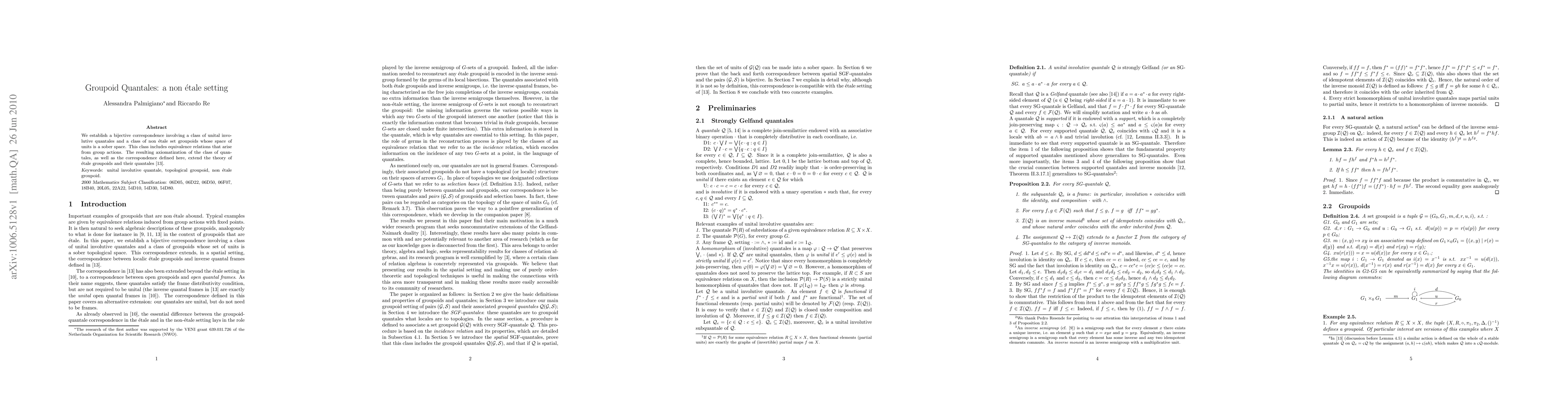 It is well known that if G is an \'etale topological groupoid then its topology can be recovered as the sup-lattice generated by G-sets, i.e. by the images of local bisections. This topology has a natural structure of unital involutive quantale. We present the analogous construction for any non \'etale groupoid with sober unit space G_0. We associate a canonical unital involutive quantale with any inverse semigroup of G-sets which is also a sheaf over G_0. We introduce axiomatically the class of quantales so obtained, and revert the construction mentioned above by proving a representability theorem for this class of quantales, under a natural spatiality condition.