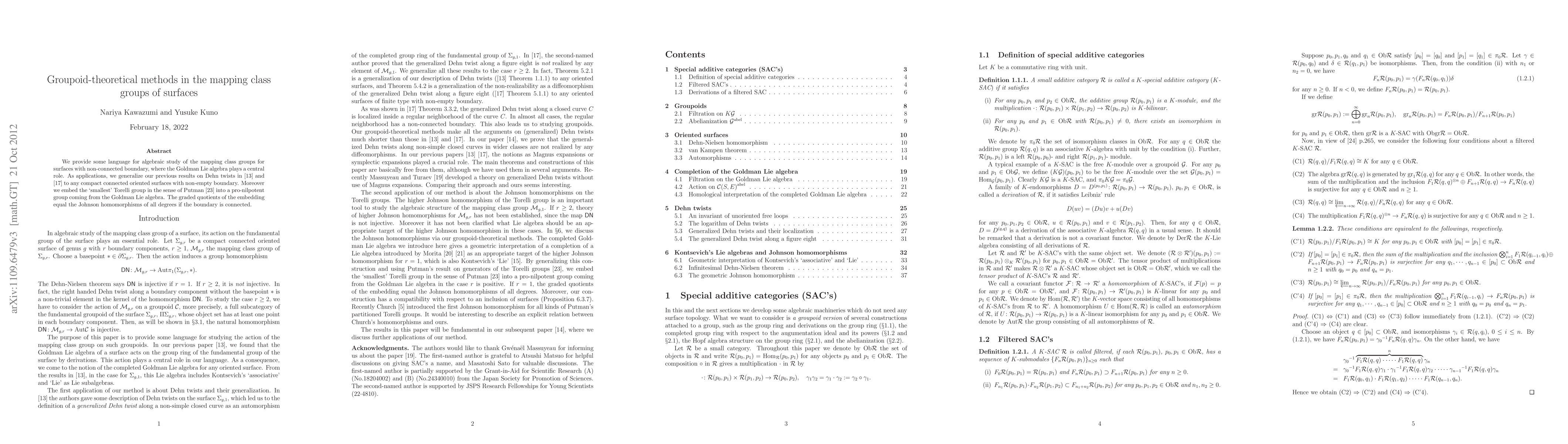 We provide some language for algebraic study of the mapping class groups for surfaces with non-connected boundary. As applications, we generalize our previous results on Dehn twists to any compact connected oriented surfaces with non-empty boundary. Moreover we embed the `smallest' Torelli group in the sense of Putman into a pro-nilpotent group coming from the Goldman Lie algebra. The graded quotients of the embedding equal the Johnson homomorphisms of all degrees if the boundary is connected.