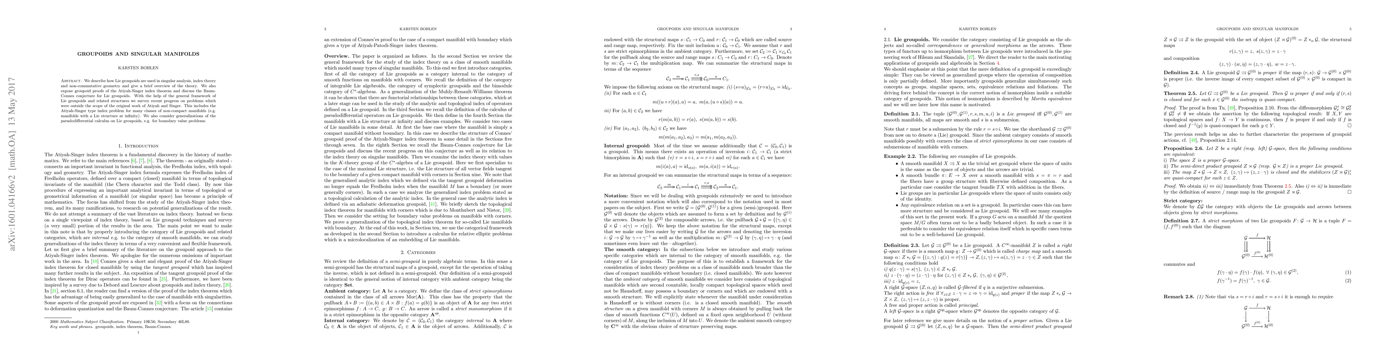 This paper explores the application of Lie groupoids in singular analysis, index theory, and non-commutative geometry, providing proofs for the Atiyah-Singer index theorem and the Baum-Connes conjecture. It surveys recent advancements extending the Atiyah-Singer index problem to non-compact manifolds and generalizes pseudodifferential calculus on Lie groupoids.