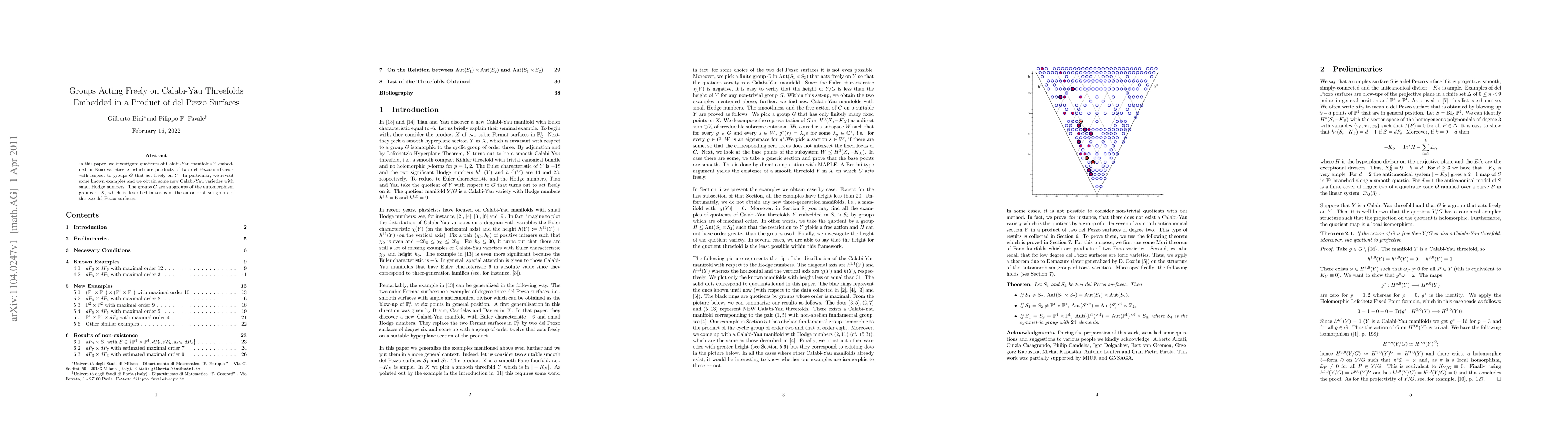 This paper explores quotients of Calabi-Yau manifolds embedded in products of two del Pezzo surfaces under free group actions, discovering new Calabi-Yau varieties with small Hodge numbers and revisiting known examples. The groups act as subgroups of the automorphism group of the Fano variety.