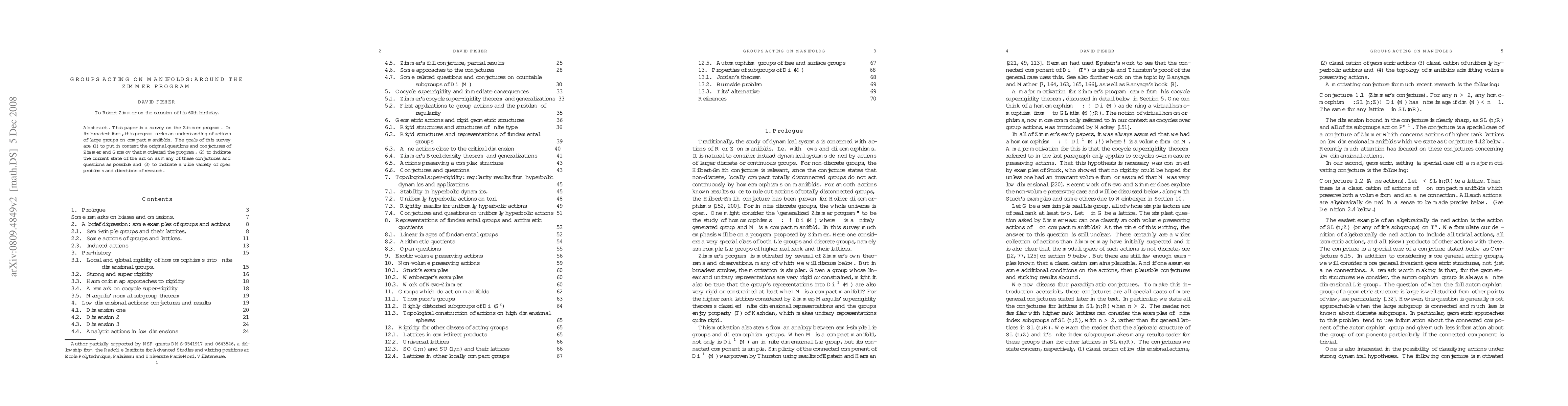 The paper's main technical contribution lies in its detailed survey and synthesis of the Zimmer program, including various conjectures, results, and open problems related to group actions on manifolds and rigid geometric structures.