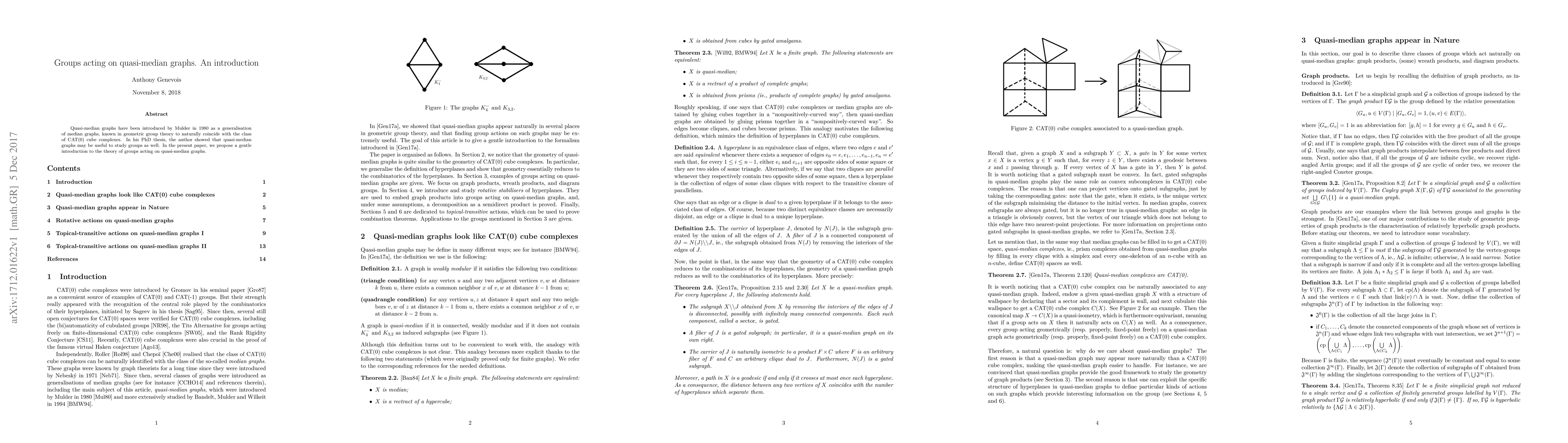 This paper introduces the theory of groups acting on quasi-median graphs, a generalization of median graphs that coincide with CAT(0) cube complexes, and discusses their potential in studying group actions.