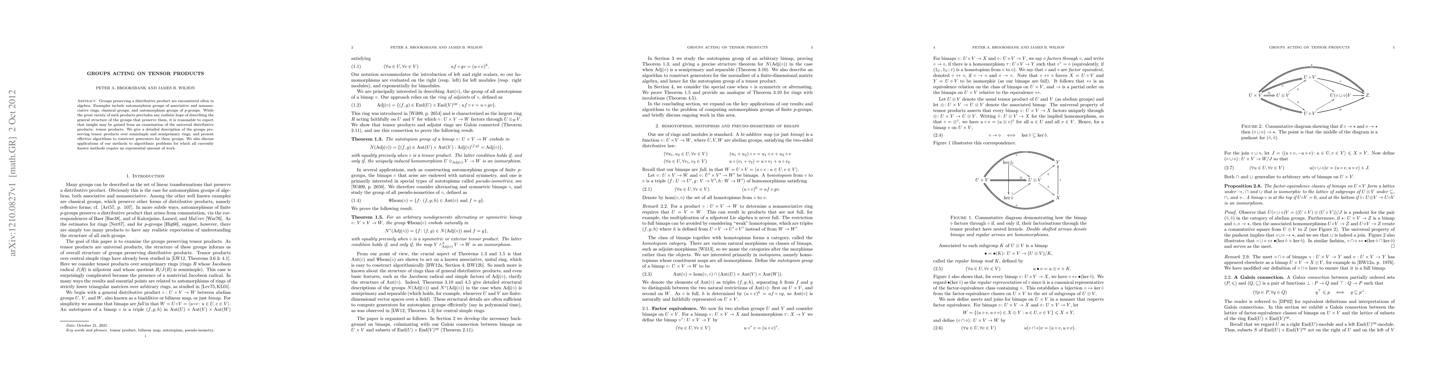 Groups preserving a distributive product are encountered often in algebra. Examples include automorphism groups of associative and nonassociative rings, classical groups, and automorphism groups of p-groups. While the great variety of such products precludes any realistic hope of describing the general structure of the groups that preserve them, it is reasonable to expect that insight may be gained from an examination of the universal distributive products: tensor products. We give a detailed description of the groups preserving tensor products over semisimple and semiprimary rings, and present effective algorithms to construct generators for these groups. We also discuss applications of our methods to algorithmic problems for which all currently known methods require an exponential amount of work.