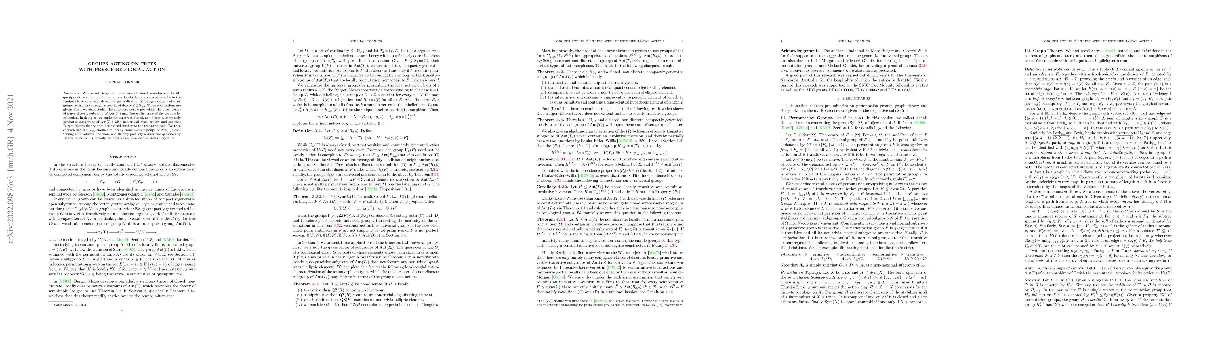 We extend Burger--Mozes theory of closed, non-discrete, locally quasiprimitive automorphism groups of locally finite, connected graphs to the semiprimitive case, and develop a generalization of Burger--Mozes universal groups acting on the regular tree $T_{d}$ of degree $d\in\mathbb{N}_{\ge 3}$. Three applications are given: First, we characterize the automorphism types which the quasi-center of a non-discrete subgroup of $\mathrm{Aut}(T_{d})$ may feature in terms of the group's local~action. In doing so, we explicitly construct closed, non-discrete, compactly generated subgroups of $\mathrm{Aut}(T_{d})$ with non-trivial quasi-center, and see that Burger--Mozes theory does not extend further to the transitive case. We then characterize the $(P_{k})$-closures of locally transitive subgroups of $\mathrm{Aut}(T_{d})$ containing an involutive inversion, and thereby partially answer two questions by Banks--Elder--Willis. Finally, we offer a new view on the Weiss conjecture.