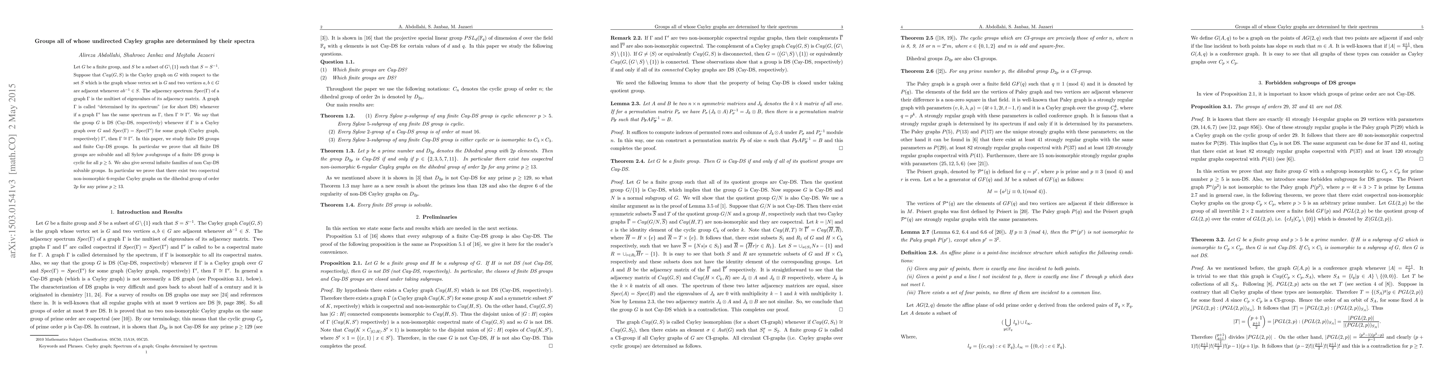 This paper investigates finite DS (determined by spectrum) groups and Cay-DS (Cayley graph determined by spectrum) groups, proving that all finite DS groups are solvable and their Sylow $p$-subgroups are cyclic for $p\geq 5$. It also identifies infinite families of non Cay-DS solvable groups and demonstrates the existence of two cospectral non-isomorphic $6$-regular Cayley graphs on the dihedral group of order $2p$ for primes $p\geq 13$.