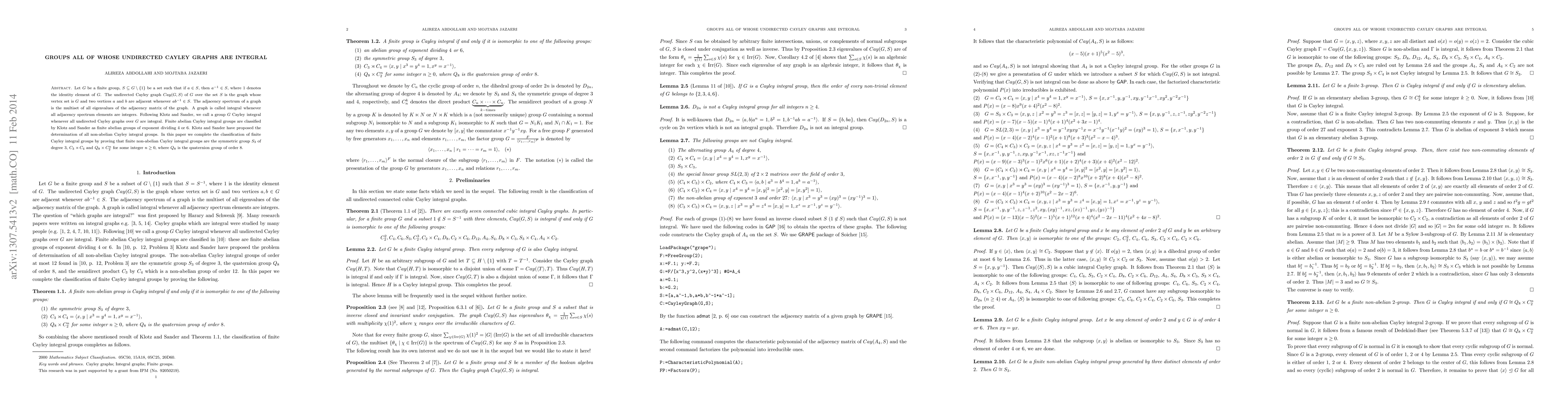Let $G$ be a finite group, $S\subseteq G\setminus\{1\}$ be a set such that if $a\in S$, then $a^{-1}\in S$, where $1$ denotes the identity element of $G$. The undirected Cayley graph $Cay(G,S)$ of $G$ over the set $S$ is the graph whose vertex set is $G$ and two vertices $a$ and $b$ are adjacent whenever $ab^{-1}\in S$. The adjacency spectrum of a graph is the multiset of all eigenvalues of the adjacency matrix of the graph. A graph is called integral whenever all adjacency spectrum elements are integers. Following Klotz and Sander, we call a group $G$ Cayley integral whenever all undirected Cayley graphs over $G$ are integral. Finite abelian Cayley integral groups are classified by Klotz and Sander as finite abelian groups of exponent dividing $4$ or $6$. Klotz and Sander have proposed the determination of all non-abelian Cayley integral groups. In this paper we complete the classification of finite Cayley integral groups by proving that finite non-abelian Cayley integral groups are the symmetric group $S_{3}$ of degree $3$, $C_{3} \rtimes C_{4}$ and $Q_{8}\times C_{2}^{n}$ for some integer $n\geq 0$, where $Q_8$ is the quaternion group of order $8$.