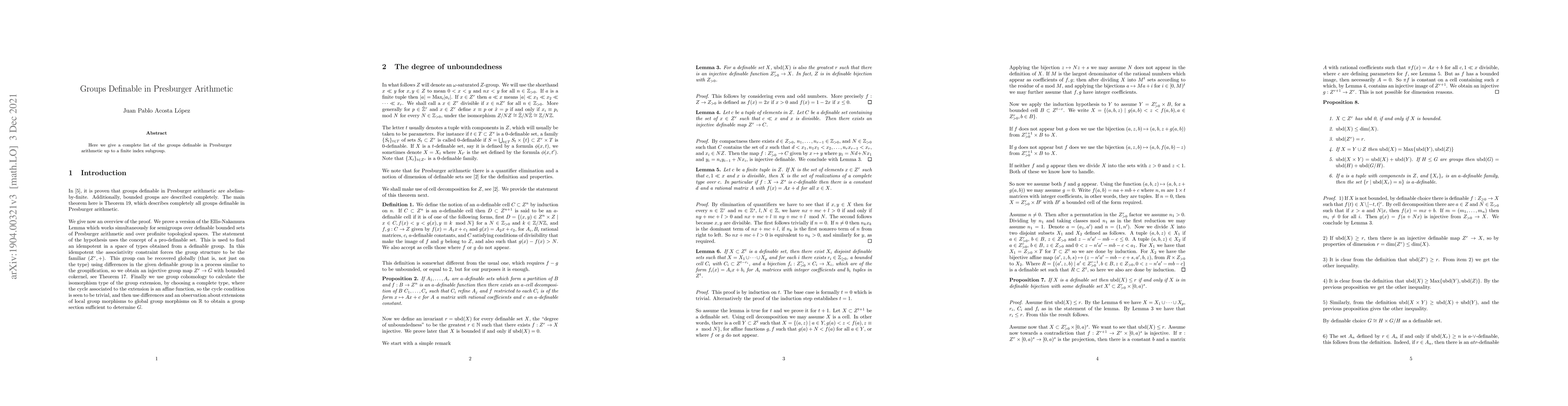 Summary: This paper identifies all groups definable within Presburger arithmetic, classifying them up to a finite index subgroup. The findings enhance our understanding of the structure of groups expressible in this arithmetic framework.