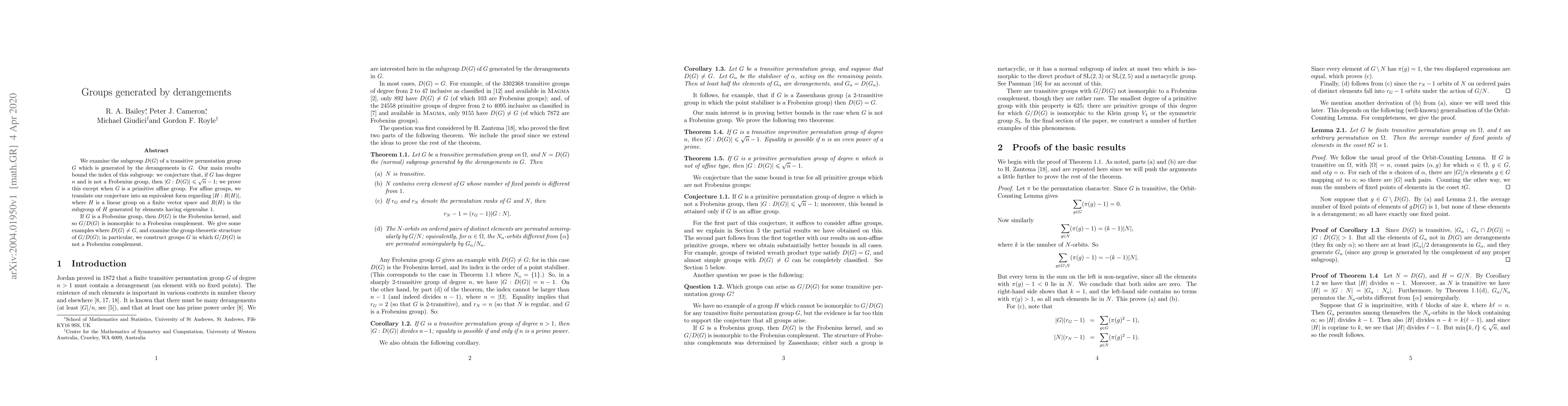 This paper investigates the subgroup $D(G)$ of a transitive permutation group $G$ generated by derangements, proving that $|G:D(G)|\leqslant\sqrt{n}-1$ for non-Frobenius groups except for primitive affine groups. For affine groups, it reformulates the conjecture in terms of linear groups and their subgroups generated by elements with eigenvalue 1.