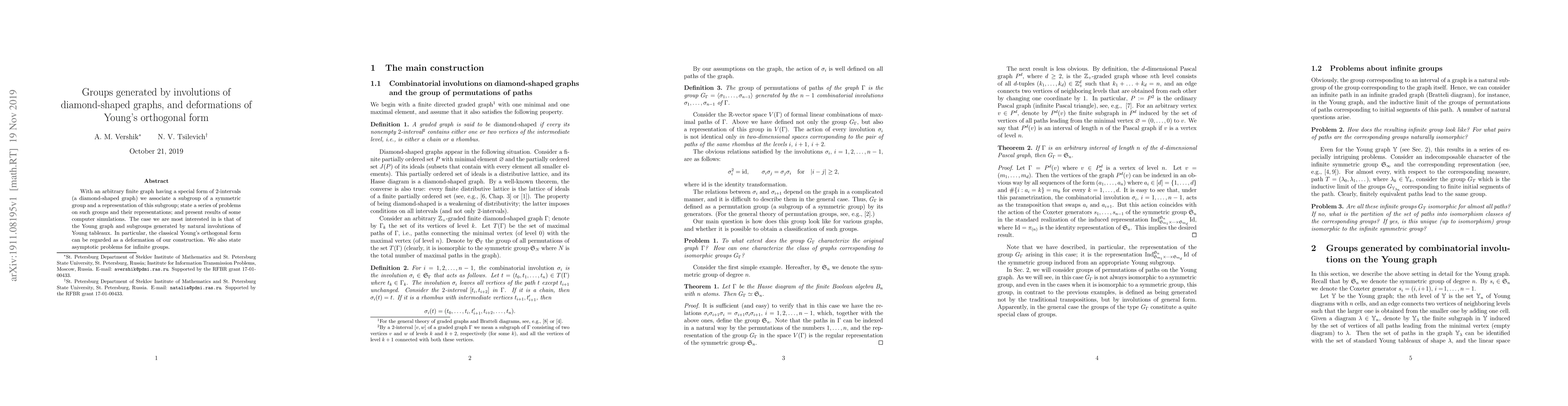 With an arbitrary finite graph having a special form of 2-intervals (a diamond-shaped graph) we associate a subgroup of a symmetric group and a representation of this subgroup; state a series of problems on such groups and their representations; and present results of some computer simulations. The case we are most interested in is that of the Young graph and subgroups generated by natural involutions of Young tableaux. In particular, the classical Young's orthogonal form can be regarded as a deformation of our construction. We also state asymptotic problems for infinite groups.