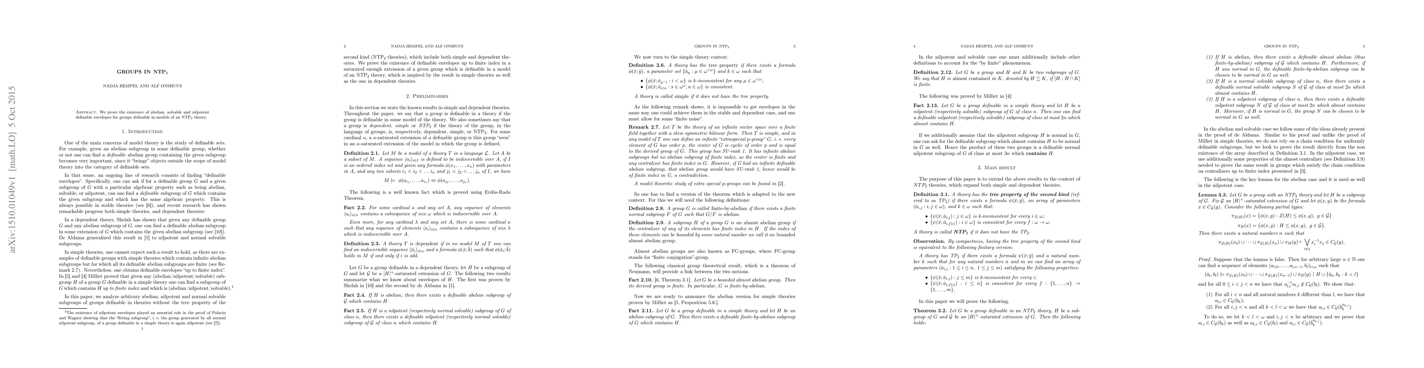 Summary: The paper establishes the existence of abelian, solvable, and nilpotent definable envelopes for groups within models of a theory satisfying the Non-triviality Property 2 (NTP2). This provides a structural framework for understanding these groups in the context of model theory.