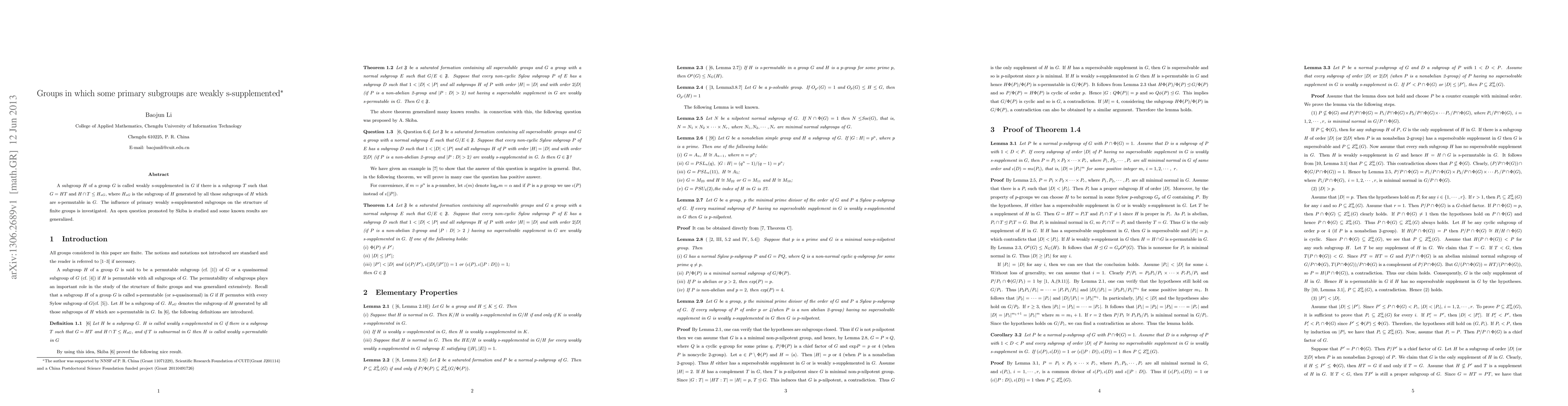 This paper explores the structural impact of primary subgroups in finite groups that are weakly s-supplemented, addressing an open question posed by Skiba and generalizing existing results in the field.