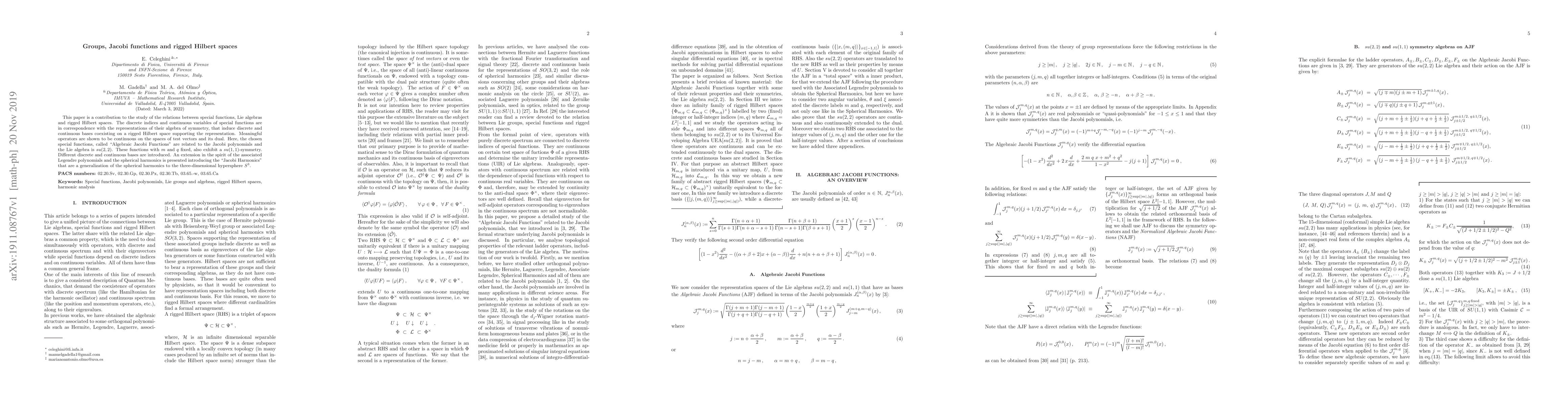 This paper explores the connections between special functions, Lie algebras, and rigged Hilbert spaces, focusing on "Algebraic Jacobi Functions" related to Jacobi polynomials and the su(2,2) Lie algebra. It introduces "Jacobi Harmonics" as a generalization of spherical harmonics to the three-dimensional hypersphere S^3.