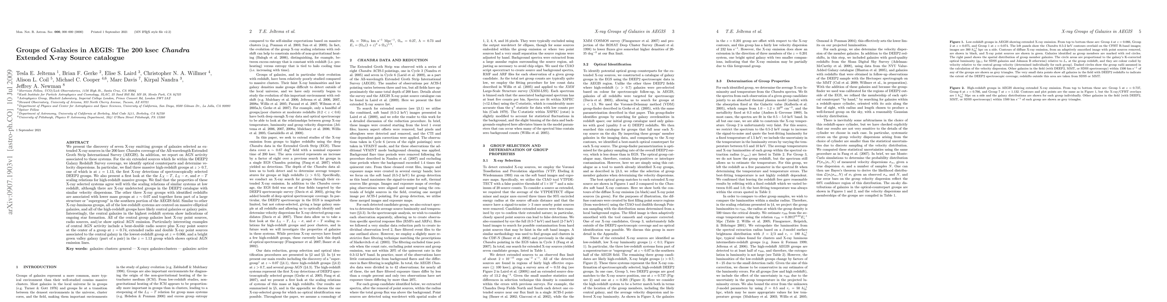 This paper identifies seven X-ray emitting groups of galaxies in the AEGIS survey using Chandra X-ray data, including three massive high-redshift groups at z>0.7, one at z=1.13. The study finds these groups' properties align with low-redshift scaling relations, though some DEEP2 groups remain X-ray undetected.