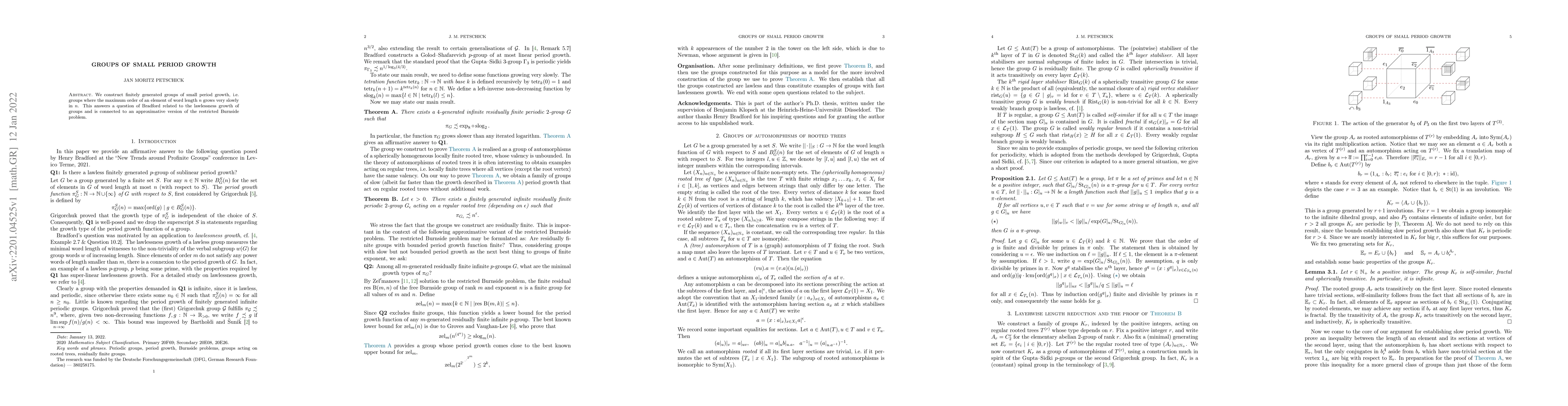 The paper introduces a novel method for constructing groups with small period growth, providing a concrete answer to Bradford's question.