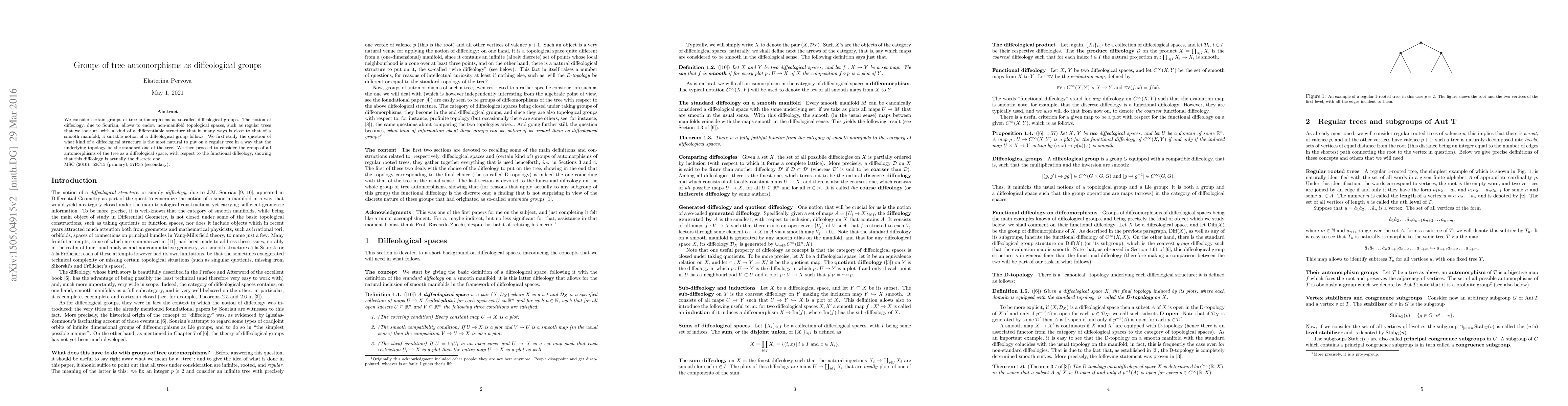 We consider certain groups of tree automorphisms as so-called diffeological groups. The notion of diffeology, due to Souriau, allows to endow non-manifold topological spaces, such as regular trees that we look at, with a kind of a differentiable structure that in many ways is close to that of a smooth manifold; a suitable notion of a diffeological group follows. We first study the question of what kind of a diffeological structure is the most natural to put on a regular tree in a way that the underlying topology be the standard one of the tree. We then proceed to consider the group of all automorphisms of the tree as a diffeological space, with respect to the functional diffeology, showing that this diffeology is actually the discrete one, the fact that therefore is true for its subgroups as well.