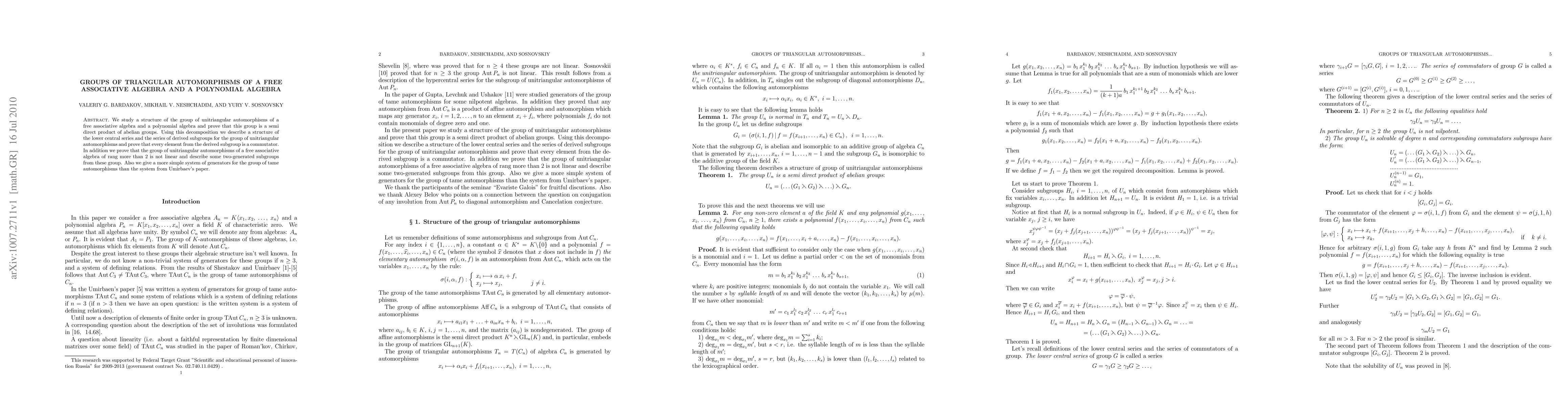 This research investigates the structure of the group of unitriangular automorphisms of free associative and polynomial algebras, proving it is a semi-direct product of abelian groups. It also demonstrates that every derived subgroup element is a commutator and that the group is non-linear for associative algebras of rank greater than 2.