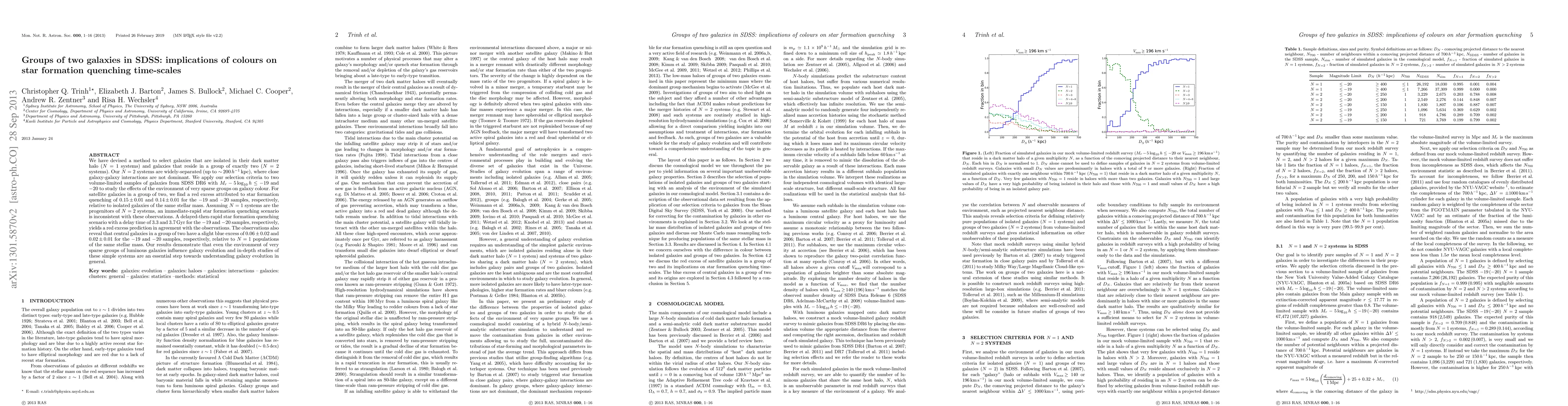 We have devised a method to select galaxies that are isolated in their dark matter halo (N=1 systems) and galaxies that reside in a group of exactly two (N=2 systems). Our N=2 systems are widely-separated (up to $\sim$\,200\,$h^{-1}$\,kpc), where close galaxy-galaxy interactions are not dominant. We apply our selection criteria to two volume-limited samples of galaxies from SDSS DR6 with $M_{r}-5 \log_{10} h \leq$ -19 and -20 to study the effects of the environment of very sparse groups on galaxy colour. For satellite galaxies in a group of two, we find a red excess attributed to star formation quenching of 0.15\,$\pm$\,0.01 and 0.14\,$\pm$\,0.01 for the -19 and -20 samples, respectively, relative to isolated galaxies of the same stellar mass. Assuming N=1 systems are the progenitors of N=2 systems, an immediate-rapid star formation quenching scenario is inconsistent with these observations. A delayed-then-rapid star formation quenching scenario with a delay time of 3.3 and 3.7\,Gyr for the -19 and -20 samples, respectively, yields a red excess prediction in agreement with the observations. The observations also reveal that central galaxies in a group of two have a slight blue excess of 0.06\,$\pm$\,0.02 and 0.02\,$\pm$\,0.01 for the -19 and -20 samples, respectively, relative to N=1 populations of the same stellar mass. Our results demonstrate that even the environment of very sparse groups of luminous galaxies influence galaxy evolution and in-depth studies of these simple systems are an essential step towards understanding galaxy evolution in general.
