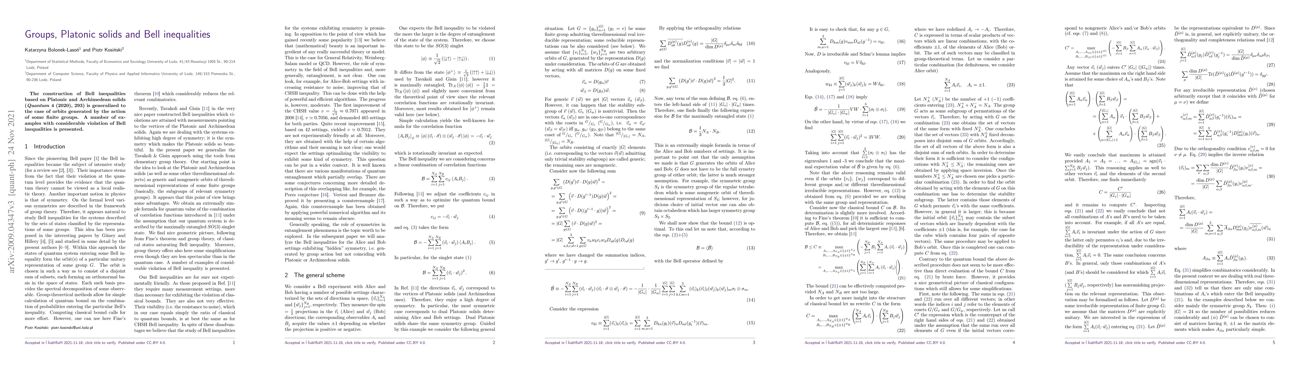 This paper generalizes the construction of Bell inequalities using Platonic and Archimedean solids to finite group actions, providing several examples that show significant violations of Bell inequalities.