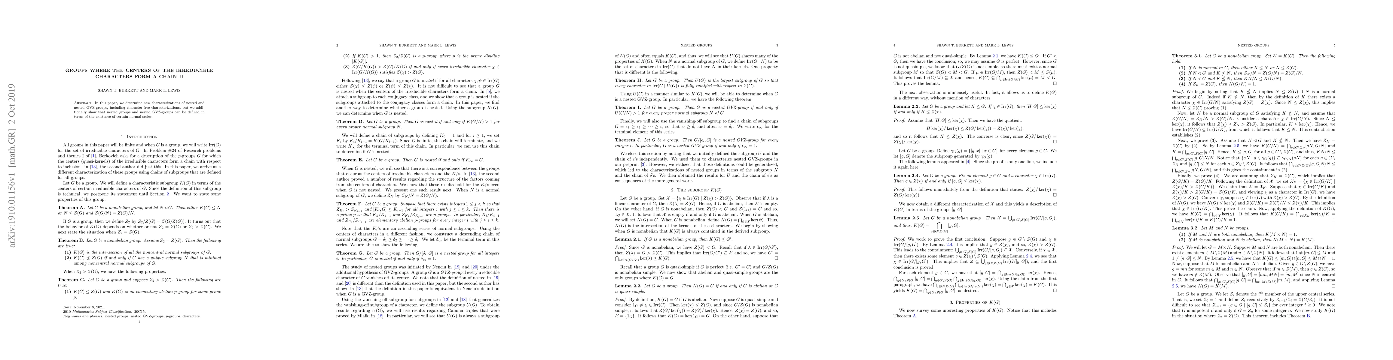 This paper provides new characterizations of nested and nested GVZ-groups, focusing on character-free definitions and demonstrating that these groups can also be defined through specific normal series.
