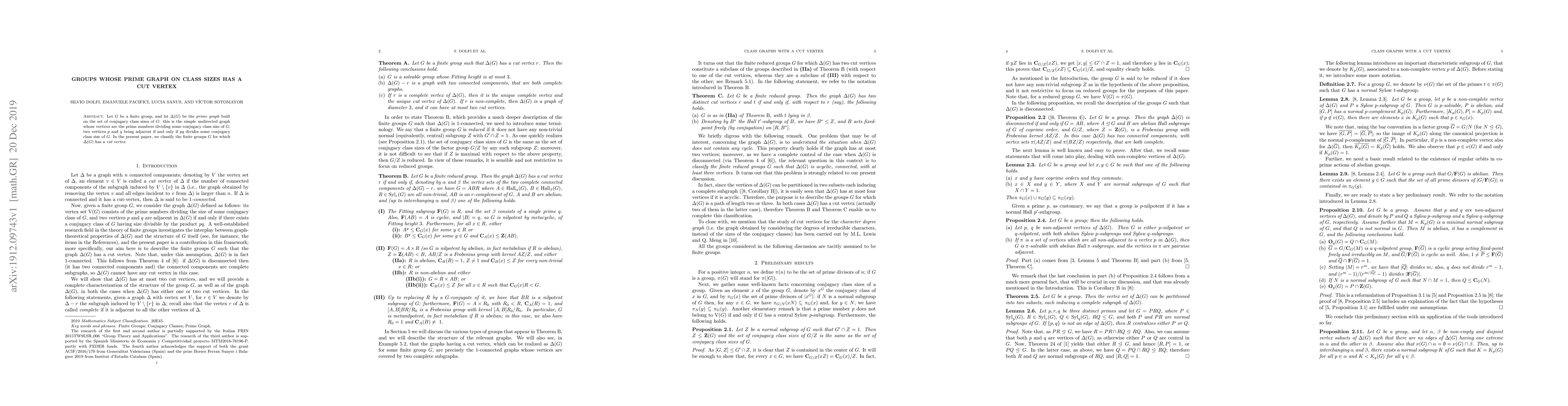 Let $G$ be a finite group, and let $\Delta(G)$ be the prime graph built on the set of conjugacy class sizes of $G$: this is the simple undirected graph whose vertices are the prime numbers dividing some conjugacy class size of $G$, two vertices $p$ and $q$ being adjacent if and only if $pq$ divides some conjugacy class size of $G$. In the present paper, we classify the finite groups $G$ for which $\Delta(G)$ has a cut vertex.