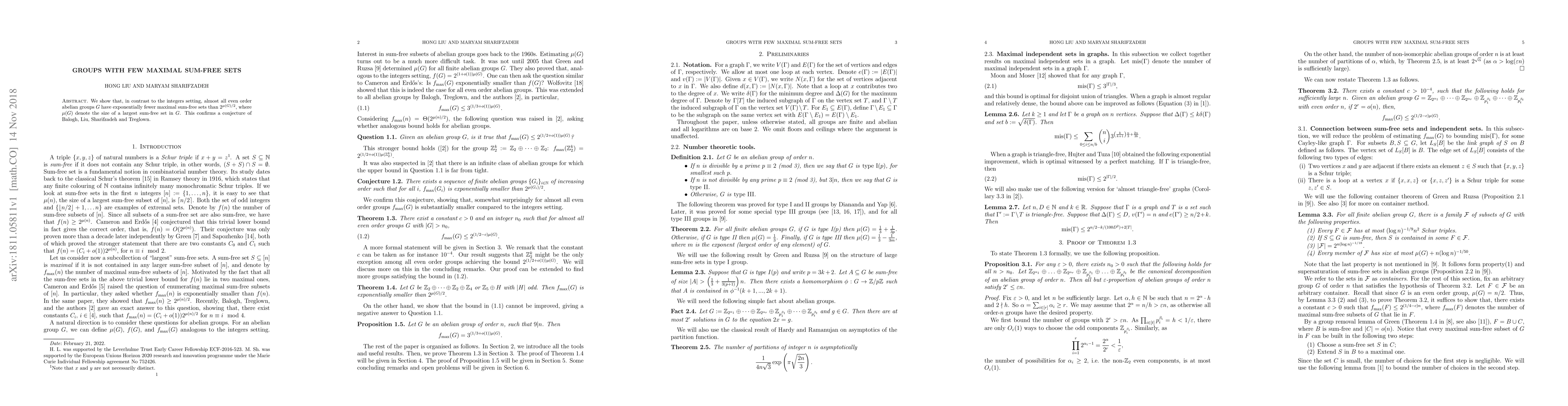 The paper employs group-theoretic techniques, specifically analyzing abelian groups and their sum-free sets, along with container methodology from additive combinatorics.