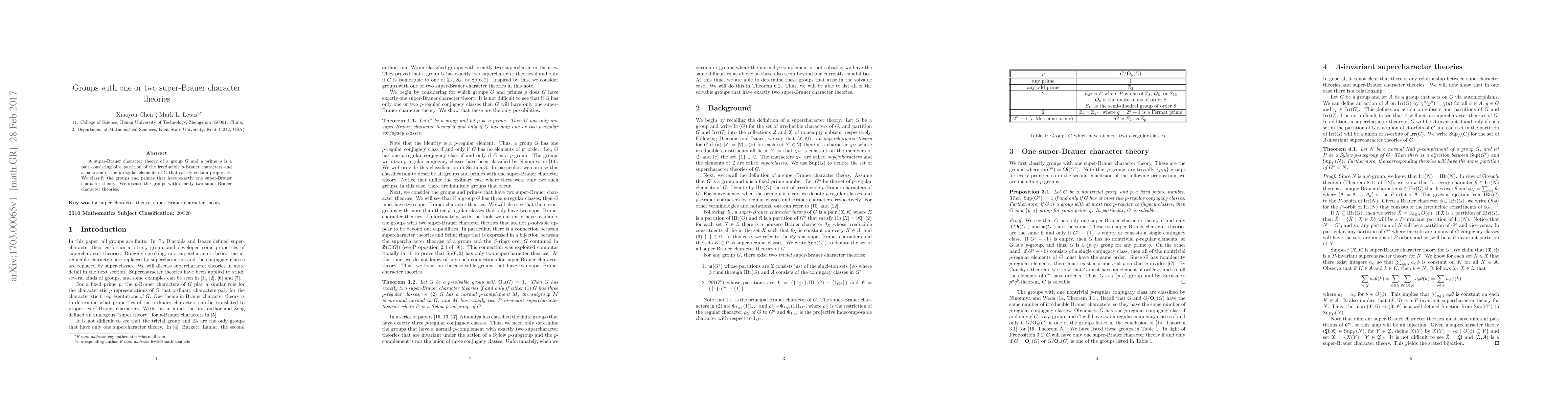 This paper classifies groups with a single super-Brauer character theory and examines groups with exactly two such theories, detailing their properties and relationships to the prime $p$.