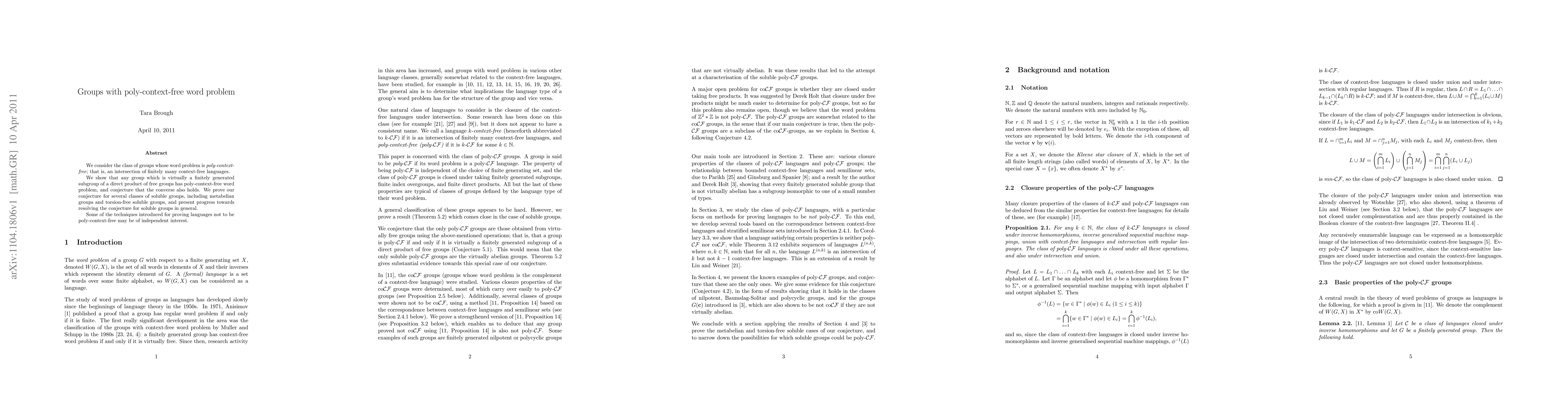 The paper examines groups with poly-context-free word problems, proving that virtually finitely generated subgroups of direct products of free groups have such problems, and conjectures the converse. The conjecture is proven for metabelian and torsion-free soluble groups, with techniques potentially useful beyond this context.
