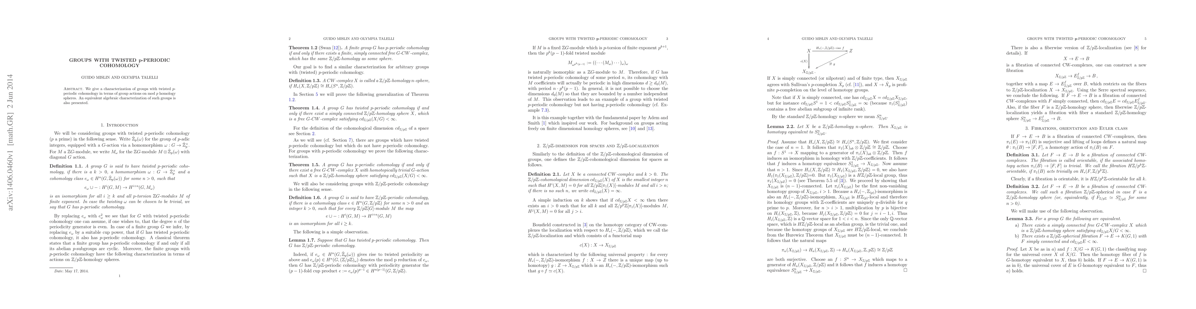 This paper characterizes groups with twisted p-periodic cohomology by their actions on mod p homology spheres and provides an equivalent algebraic description of these groups.