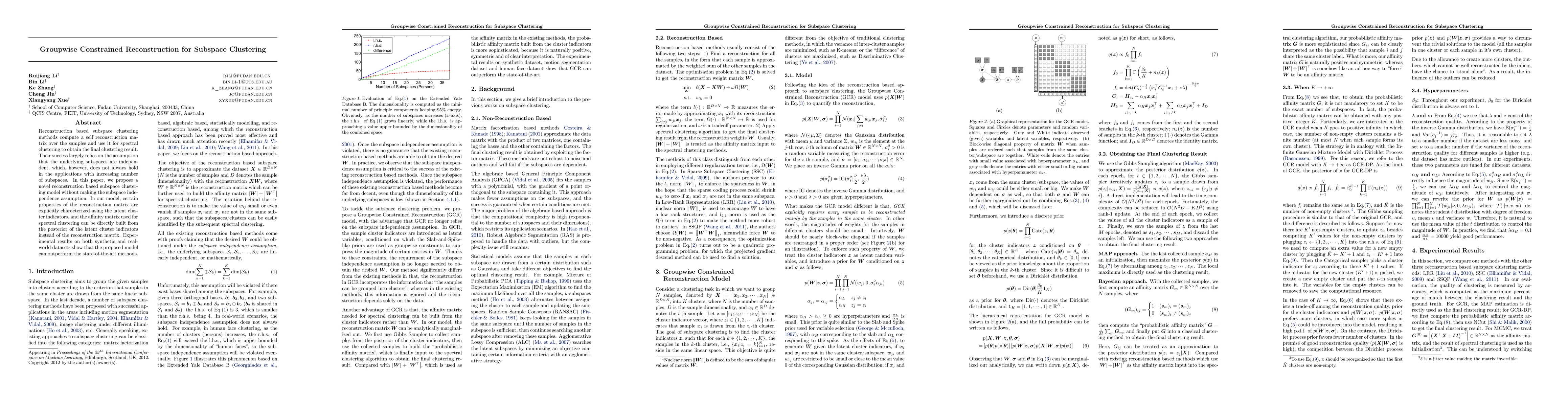 This paper introduces a novel reconstruction-based subspace clustering model that does not rely on the assumption of subspace independence. It characterizes reconstruction matrix properties using latent cluster indicators and builds the affinity matrix directly from these indicators, leading to improved performance over state-of-the-art methods in experiments on synthetic and real datasets.