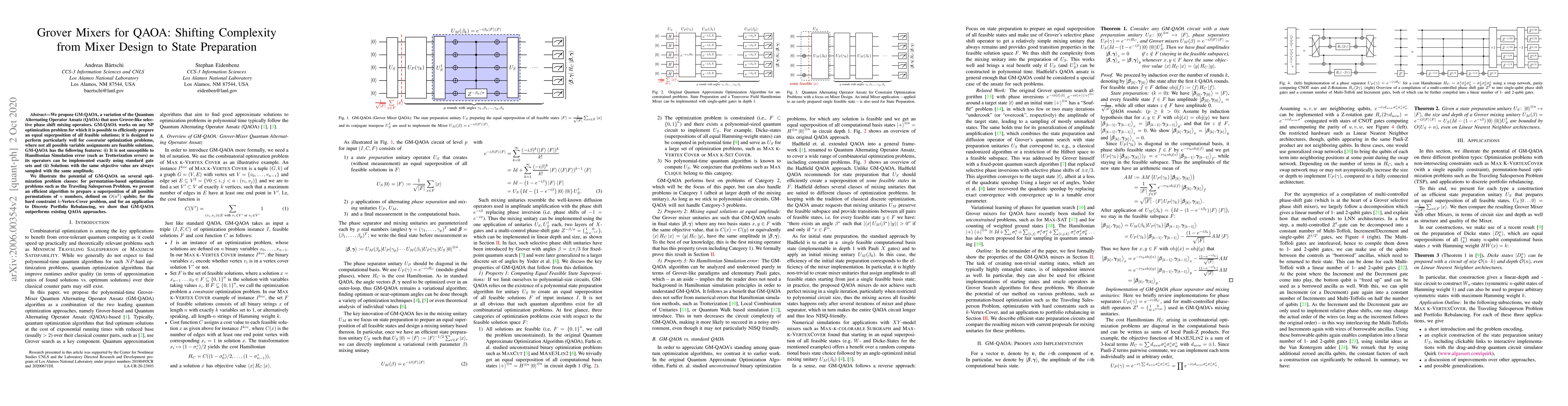 A new quantum algorithm called GM-QAOA is proposed to solve optimization problems, offering improved performance over existing methods for certain classes of problems, such as permutation-based optimizations and constraint optimization.