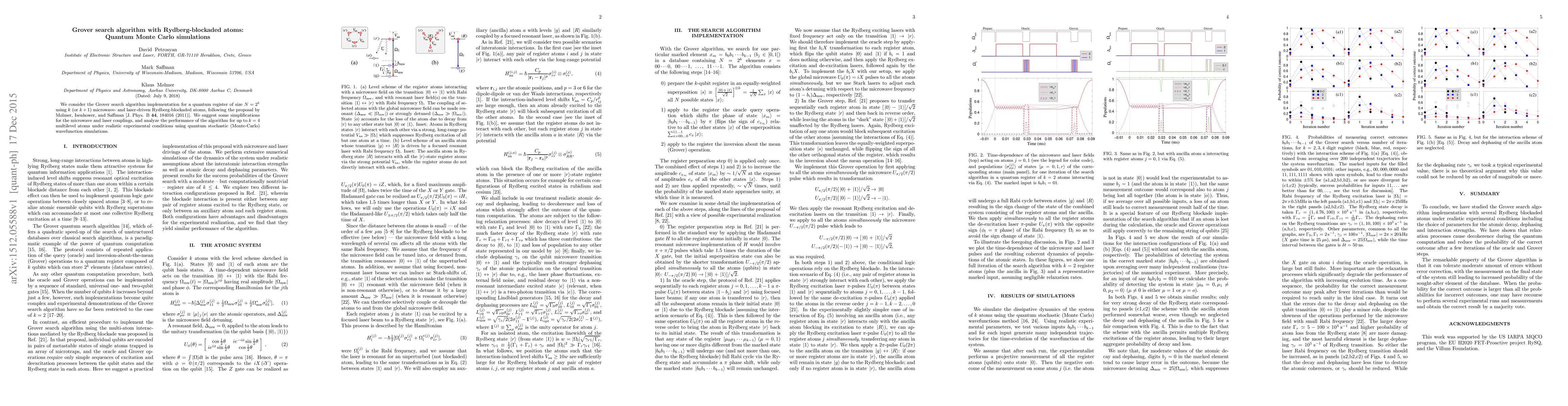 This research paper proposes simplifications to the Grover search algorithm using Rydberg-blockaded atoms, specifically k or k+1 atoms for a quantum register of size N=2^k. The performance of the algorithm is simulated under realistic conditions for up to 4-level atoms via quantum stochastic (Monte-Carlo) wavefunction simulations.
