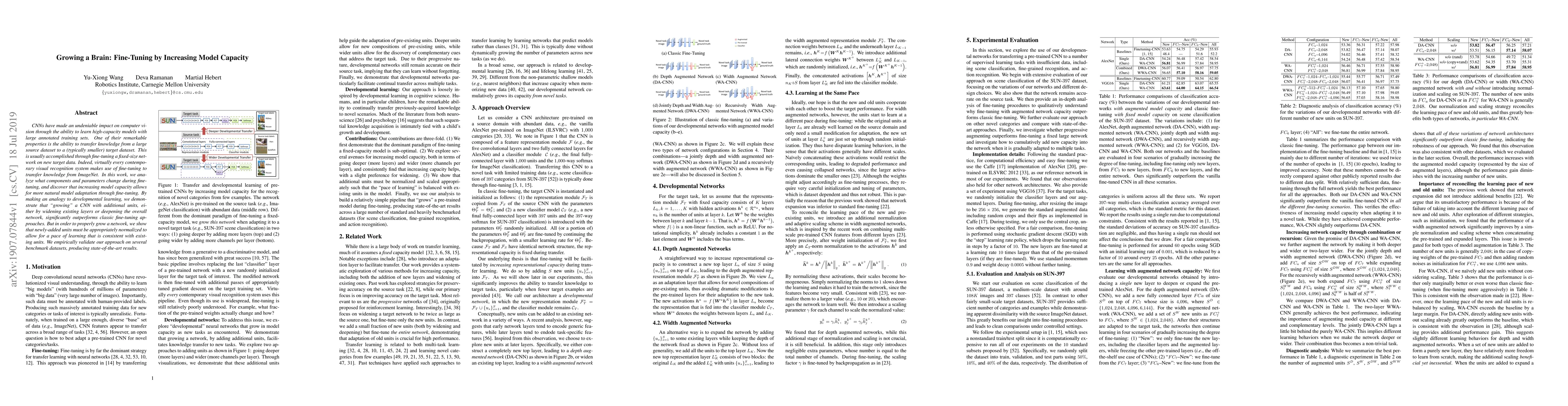 This research explores fine-tuning in Convolutional Neural Networks (CNNs) for visual recognition tasks. It reveals that increasing model capacity by 'growing' the network (widening layers or deepening the architecture) is more effective than traditional fine-tuning methods. Proper normalization of newly-added units is crucial for consistent learning. The approach yields state-of-the-art results on various benchmark datasets.
