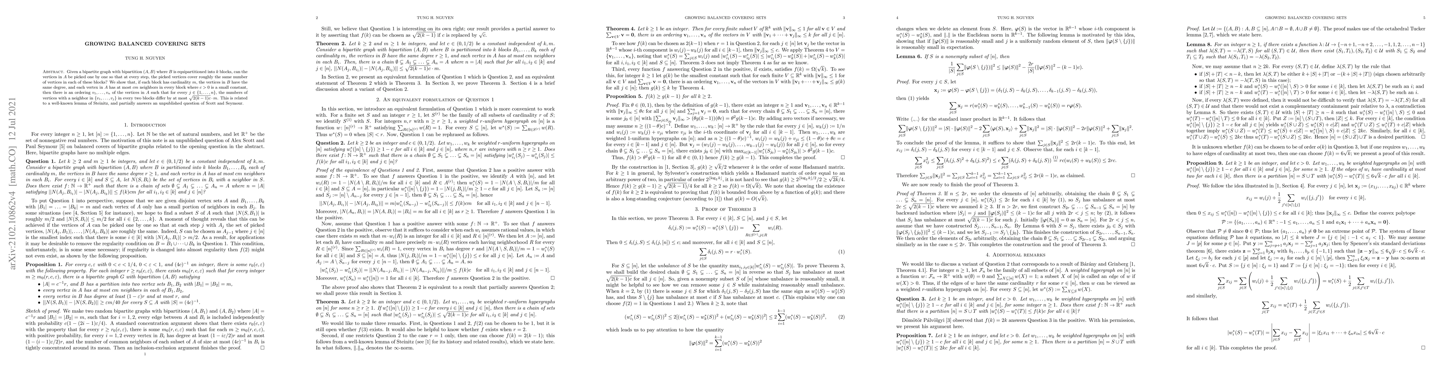 Given a bipartite graph with bipartition $(A,B)$ where $B$ is equipartitioned into $k\ge2$ blocks, can the vertices in $A$ be picked one by one so that at every step, the picked vertices cover roughly the same number of vertices in each of these blocks? We show that, if each block has cardinality $m$, the vertices in $B$ have the same degree, and each vertex in $A$ has at most $cm$ neighbors in every block where $c>0$ is a small constant, then there is an ordering $v_1,\ldots,v_n$ of the vertices in $A$ such that for every $j\in\{1,\ldots,n\}$, the numbers of vertices with a neighbor in $\{v_1,\ldots,v_j\}$ in every two blocks differ by at most $\sqrt{2(k-1)c}\cdot m$. This is related to a well-known lemma of Steinitz, and partially answers an unpublished question of Scott and Seymour.