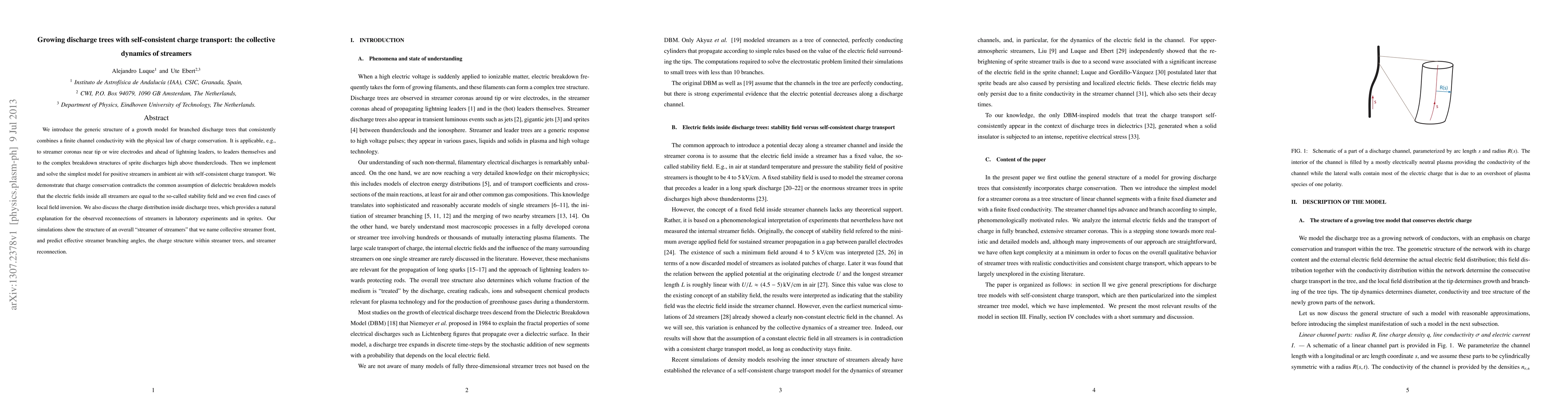 This paper develops a growth model for branched discharge trees that integrates finite channel conductivity with charge conservation laws, applicable to various discharge phenomena. It reveals that charge conservation challenges the assumption of equal electric fields in streamers, predicting local field inversions and explaining observed reconnections in discharge structures.
