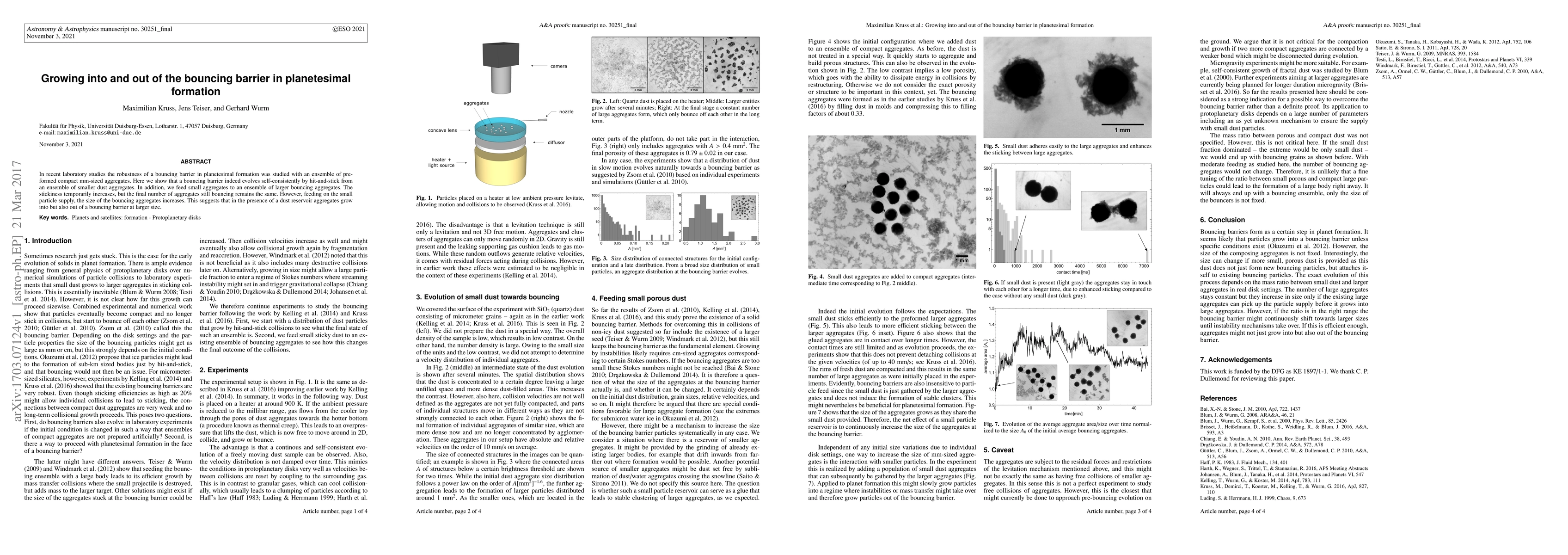 In recent laboratory studies the robustness of a bouncing barrier in planetesimal formation was studied with an ensemble of preformed compact mm-sized aggregates. Here we show that a bouncing barrier indeed evolves self-consistently by hit-and-stick from an ensemble of smaller dust aggregates. In addition, we feed small aggregates to an ensemble of larger bouncing aggregates. The stickiness temporarily increases, but the final number of aggregates still bouncing remains the same. However, feeding on the small particle supply, the size of the bouncing aggregates increases. This suggests that in the presence of a dust reservoir aggregates grow into but also out of a bouncing barrier at larger size.