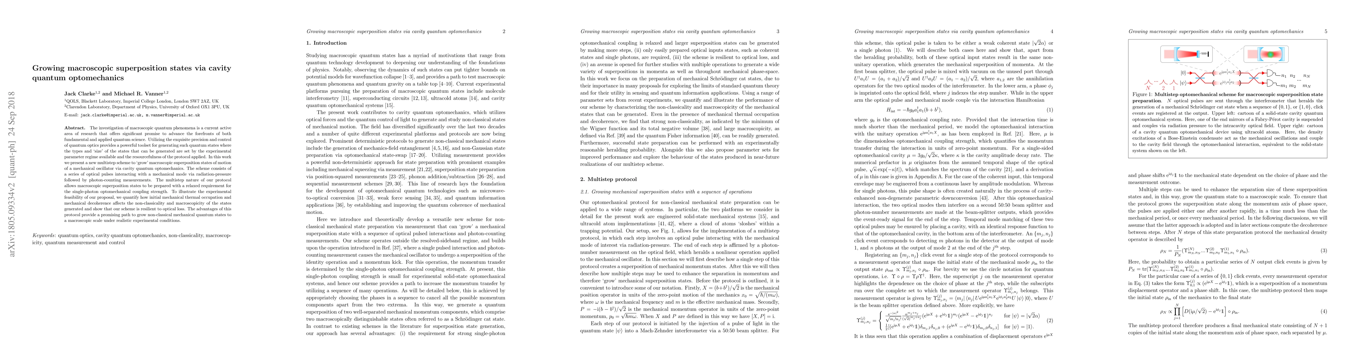 The investigation of macroscopic quantum phenomena is a current active area of research that offers significant promise to advance the forefronts of both fundamental and applied quantum science. Utilizing the exquisite precision and control of quantum optics provides a powerful toolset for generating such quantum states where the types and 'size' of the states that can be generated are set by the resourcefulness of the protocol applied. In this work we present a new scheme for 'growing' macroscopic superposition states of motion of a mechanical oscillator via cavity quantum optomechanics. The scheme consists of a series of optical pulses interacting with a mechanical mode via radiation-pressure followed by photon-counting measurements. The multistep nature of our protocol allows macroscopic superposition states to be prepared with a relaxed requirement for the single-photon optomechanical coupling strength. To demonstrate the feasibility of our scheme, we quantify how initial mechanical thermal occupation and decoherence affects the non-classicality and macroscopicity of the states generated. We show that under realistic experimental conditions, mechanical quantum states can exhibit significant non-classicality and can be grown to a macroscopic scale.