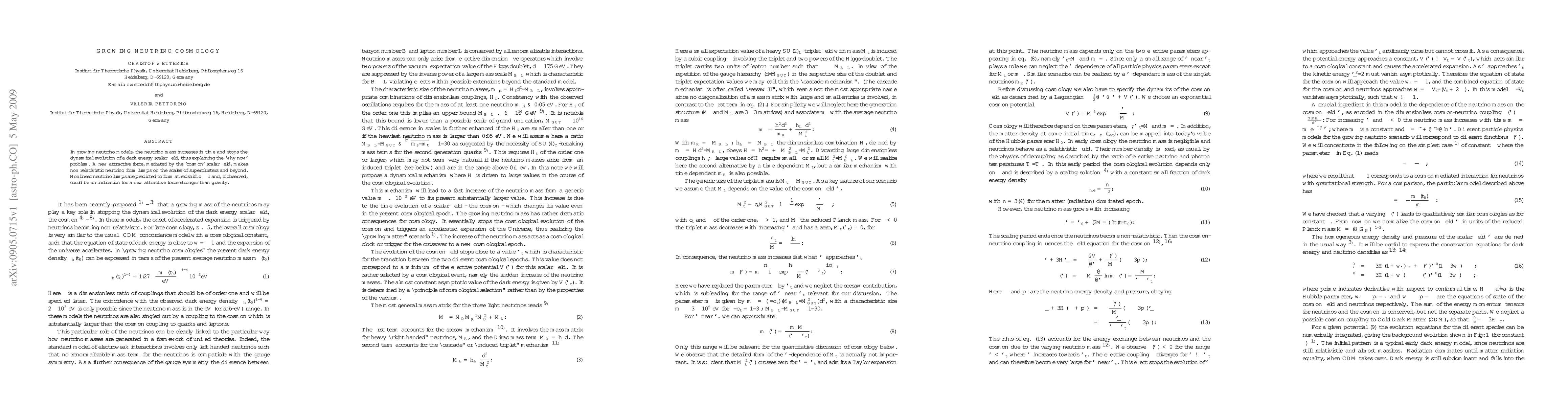 In growing neutrino models, the neutrino mass increases in time and stops the dynamical evolution of a dark energy scalar field, thus explaining the 'why now' problem. A new attractive force, mediated by the 'cosmon' scalar field, makes non relativistic neutrino form lumps on the scales of superclusters and beyond. Nonlinear neutrino lumps are predicted to form at redshift z ~ 1 and, if observed, could be an indication for a new attractive force stronger than gravity.