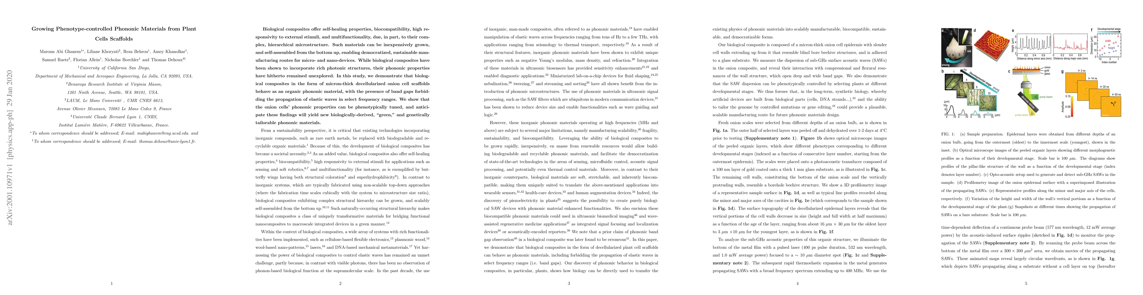 This research demonstrates that decellularized onion cell scaffolds can act as phononic materials with tunable properties, opening avenues for green, biocompatible, and genetically adaptable phononic materials.