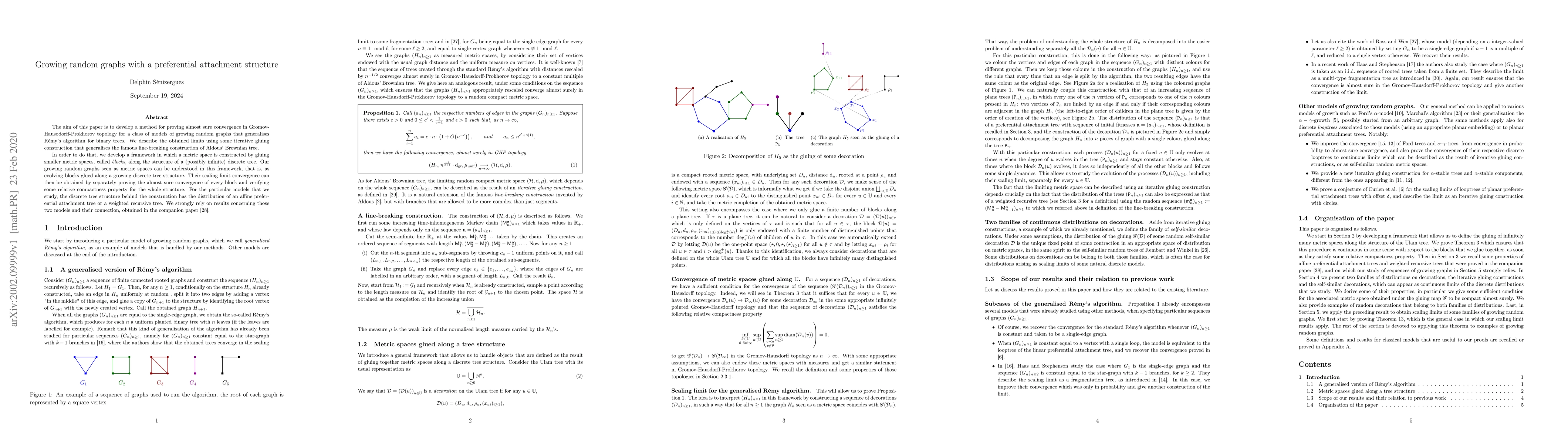 This paper develops a method to study the scaling limit of growing random graphs with preferential attachment structures, using an iterative gluing construction that generalizes Aldous' Brownian tree.