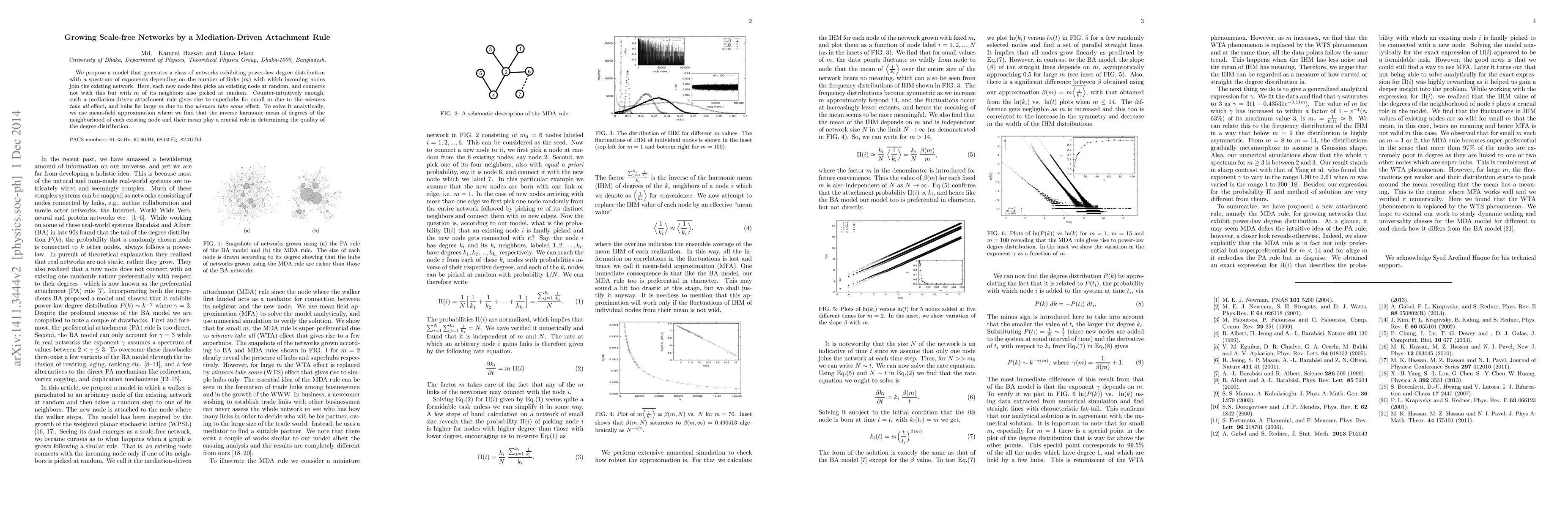 The paper introduces a novel network model generating scale-free networks with tunable power-law exponents, distinct from the Barabási-Albert model. New nodes connect to 'm' random neighbors of a randomly chosen node, leading to preferential attachment in disguise. The model exhibits 'winners take all' for small 'm' and 'winners take some' for larger 'm', with degree distribution straightness quantified by the mean of the inverse harmonic mean of degrees.