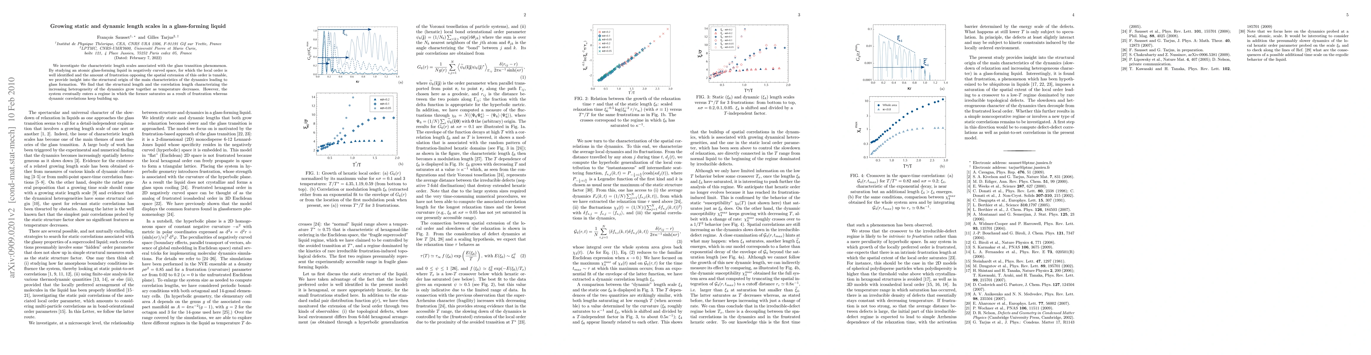 This paper explores the length scales linked to the glass transition in a glass-forming liquid, revealing that both structural and dynamic correlation lengths increase with decreasing temperature until frustration causes the structural length to plateau while dynamic correlations continue to grow.