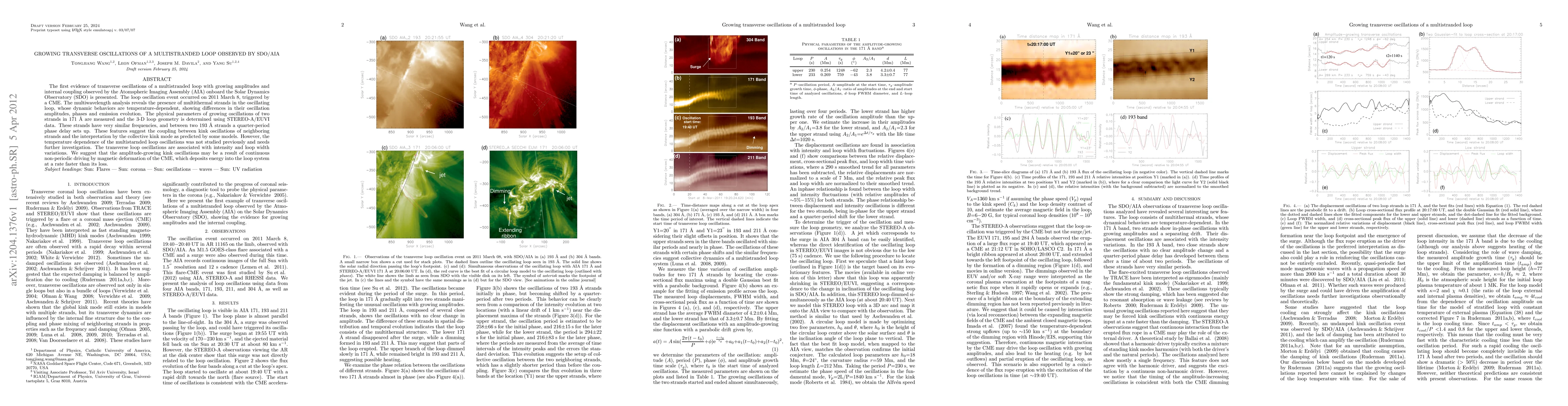 This paper presents the first evidence of transverse oscillations in a multistranded loop with growing amplitudes, observed by SDO/AIA, triggered by a CME on March 8, 2011. The study reveals multithermal strands with temperature-dependent dynamic behaviors, suggesting coupling between kink oscillations and hinting at a collective kink mode.
