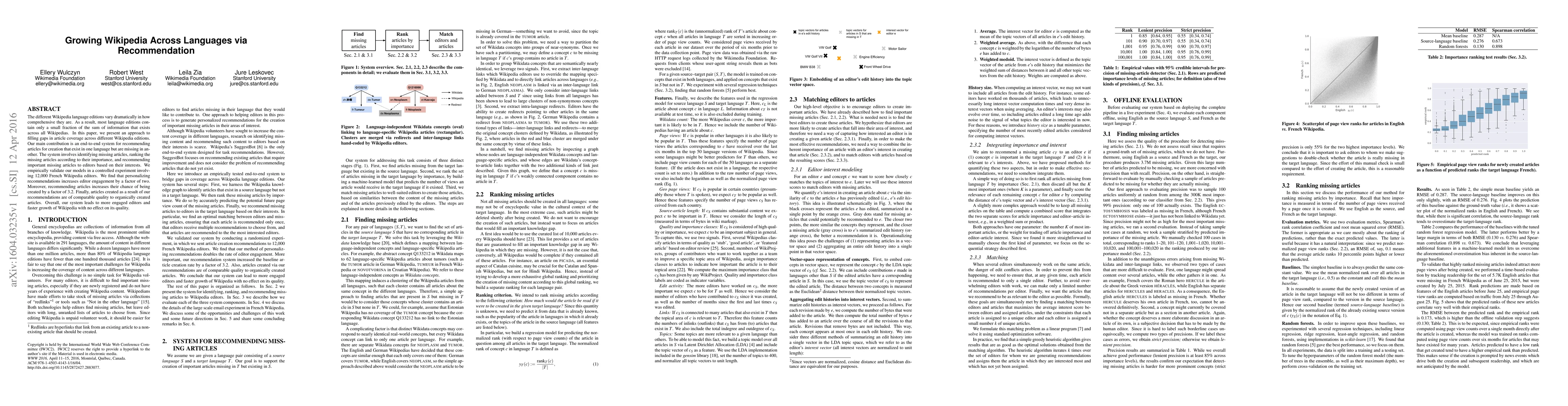 This paper proposes a system to recommend articles for creation across different Wikipedia language editions, aiming to bridge gaps in coverage. The system personalizes recommendations to editors, resulting in a twofold increase in engagement and a 3.2-fold increase in the likelihood of article creation, without compromising quality.